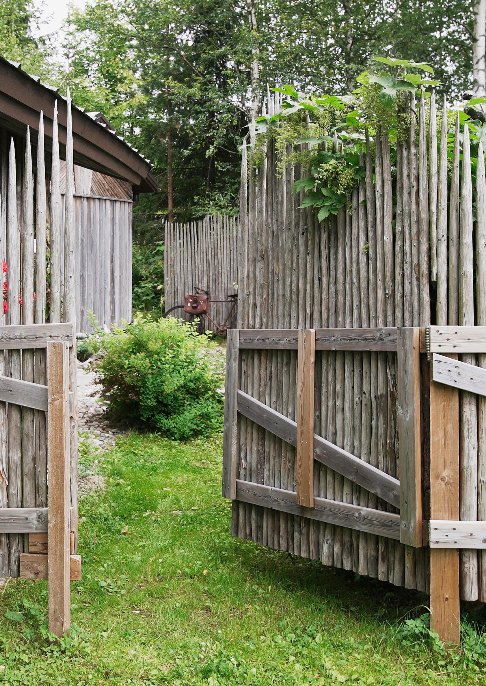 Harmaat heinäseipäät saivat uuden elämän persoonallisen aidan ja portin muodossa. Harmaata lautatavaraa voi etsiä purkurakennuksista. Mitoita portin leveys käyttötarkoituksen mukaan.