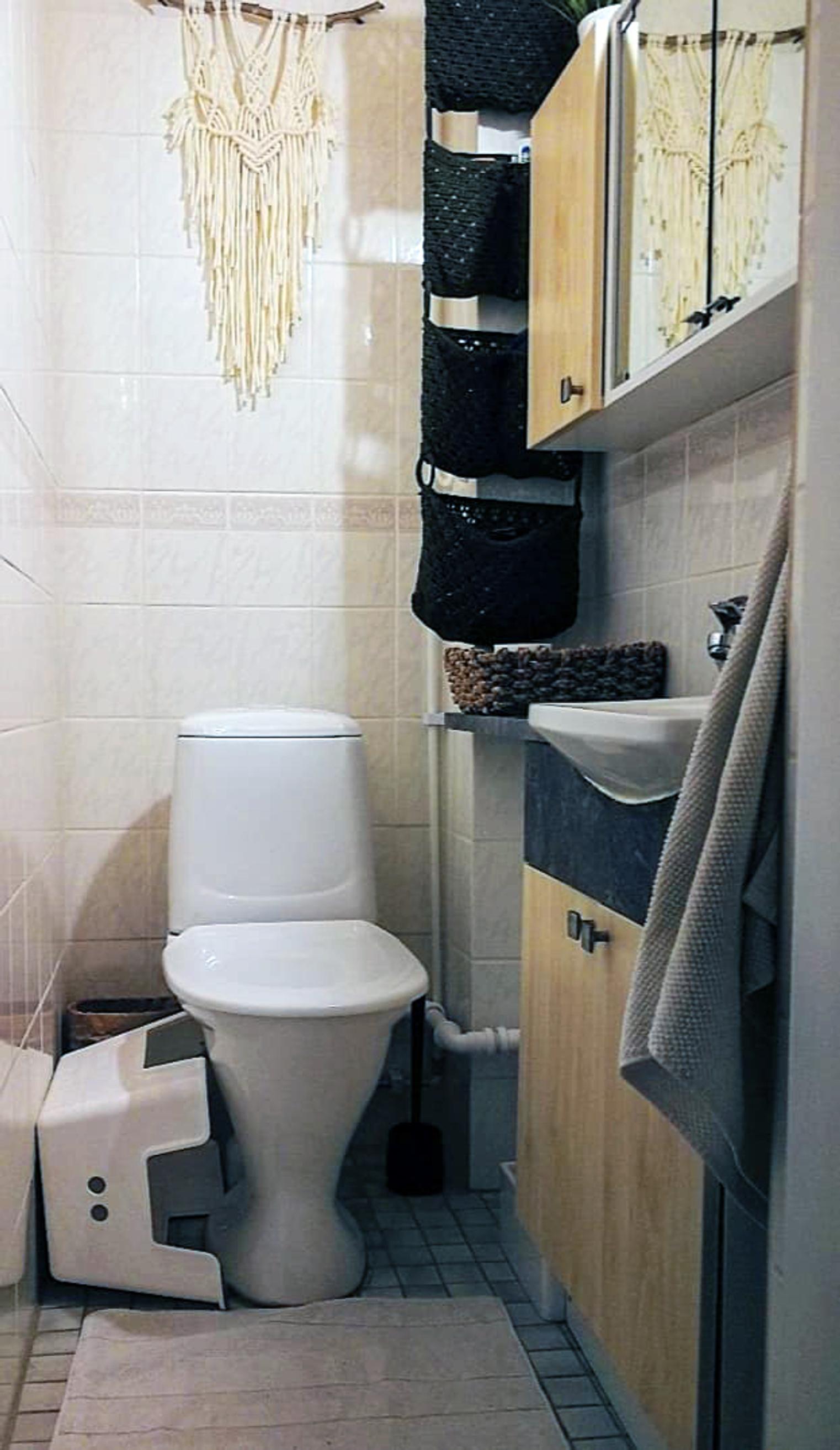 Mieskin aivan äimistyi muutoksesta, ja myös anoppi inspiroitui tikuista nähtyään vessan.Leena Muranen