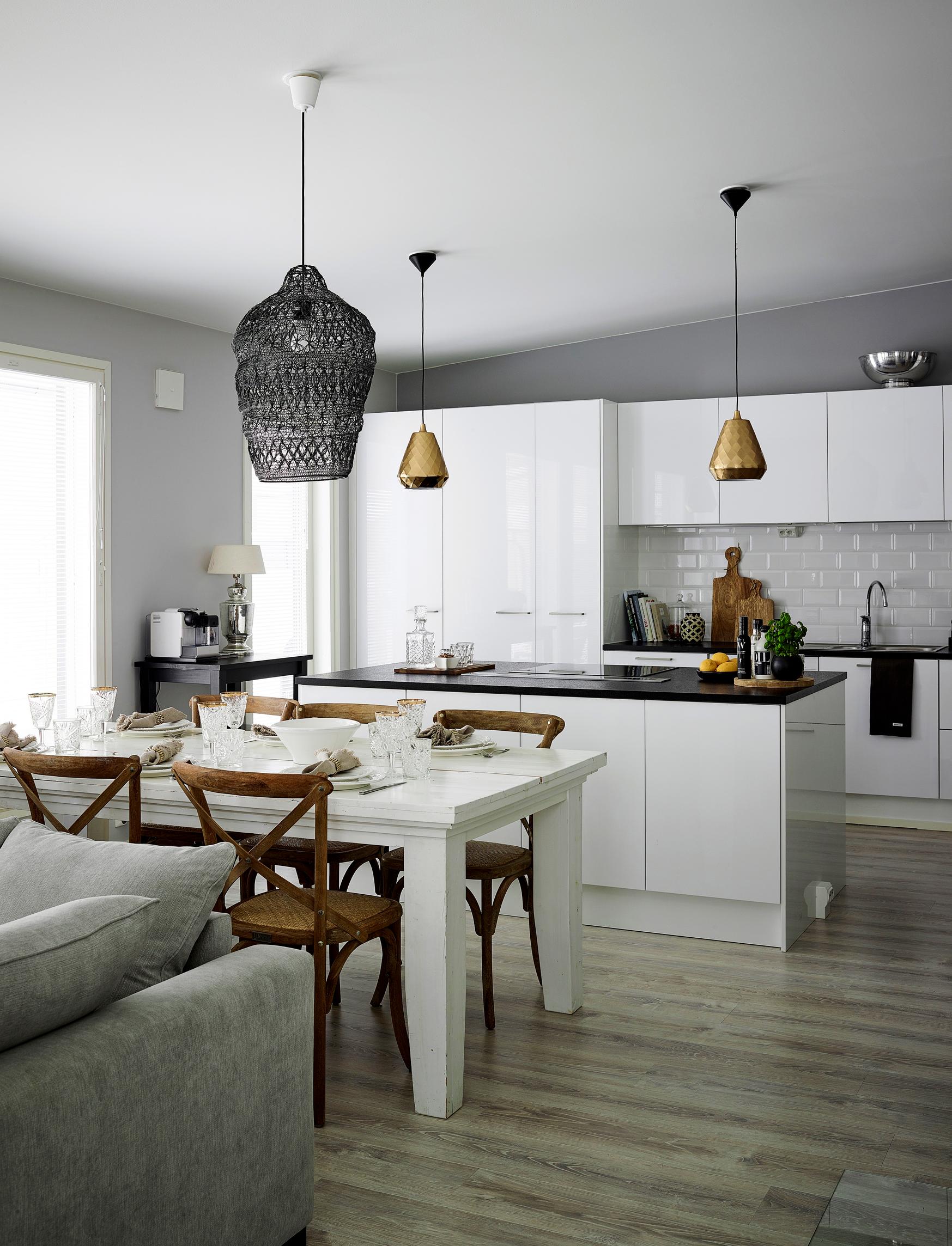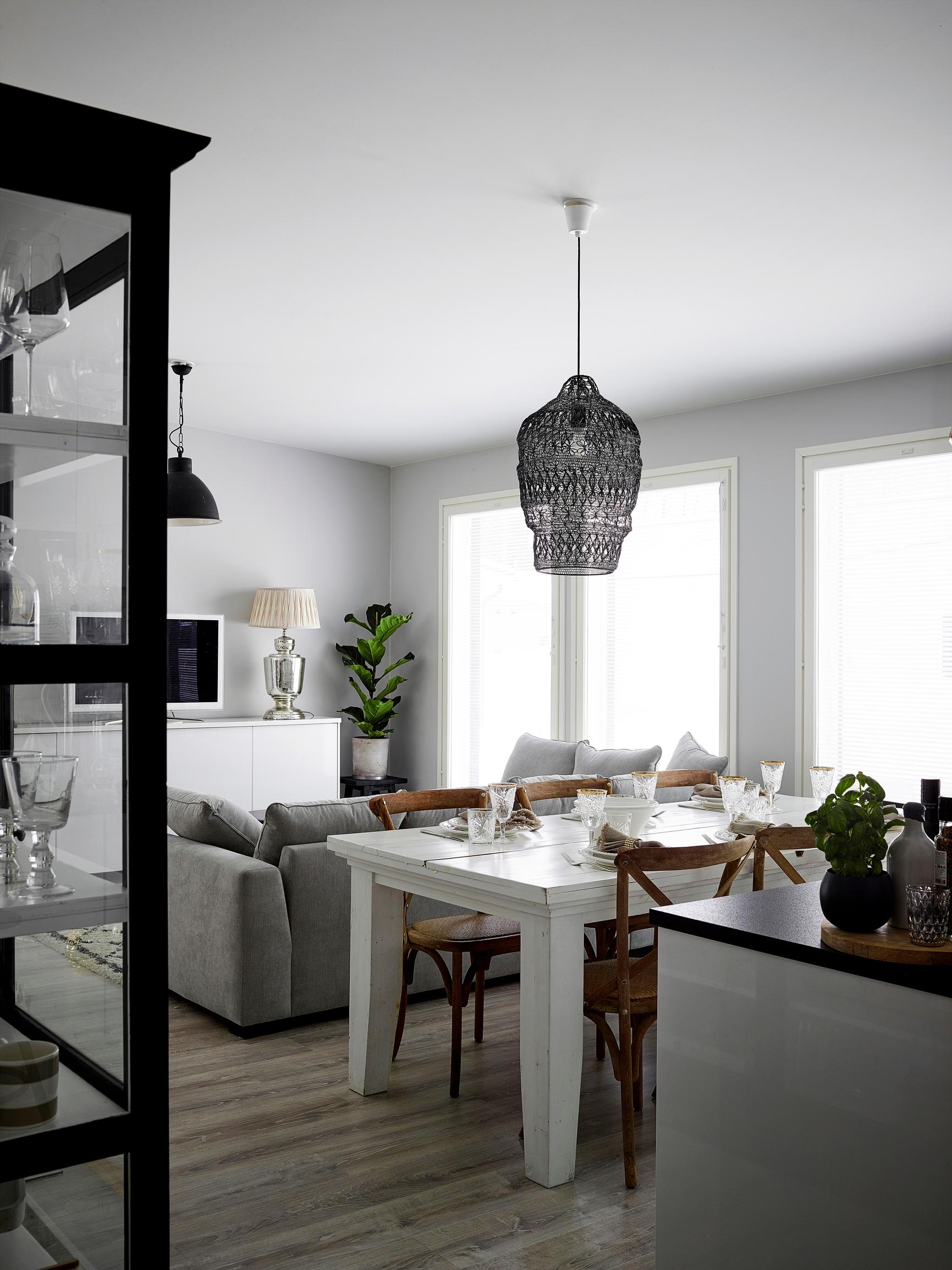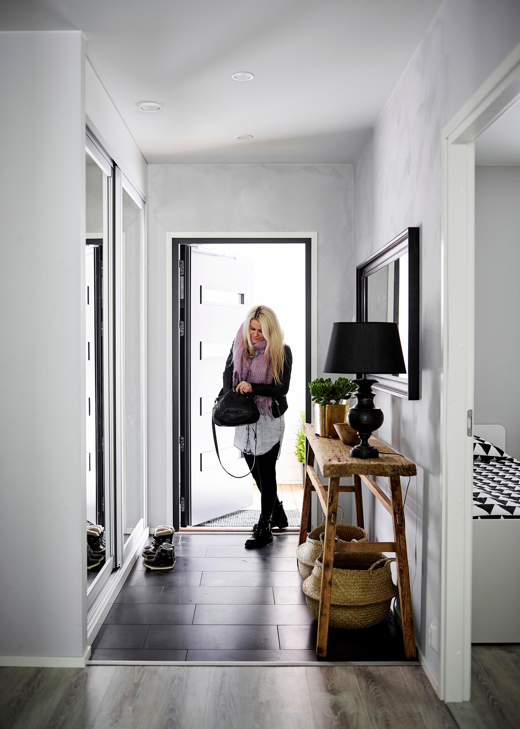 Emme ole remontti-ihmisiä. Halusimme uuden asunnon, emme remontoitavaa pommia, mutta tässä uudessa kodissa ehdimme vaikuttaa pintamateriaaleihin. Meillä on kuitenkin vahva visio kotimme sisustuksen tyylistä. Tarvitsimme enemmän tilaa kuin aiemmin, ja tässä kodissa saimme tilat yhteen tasoon.