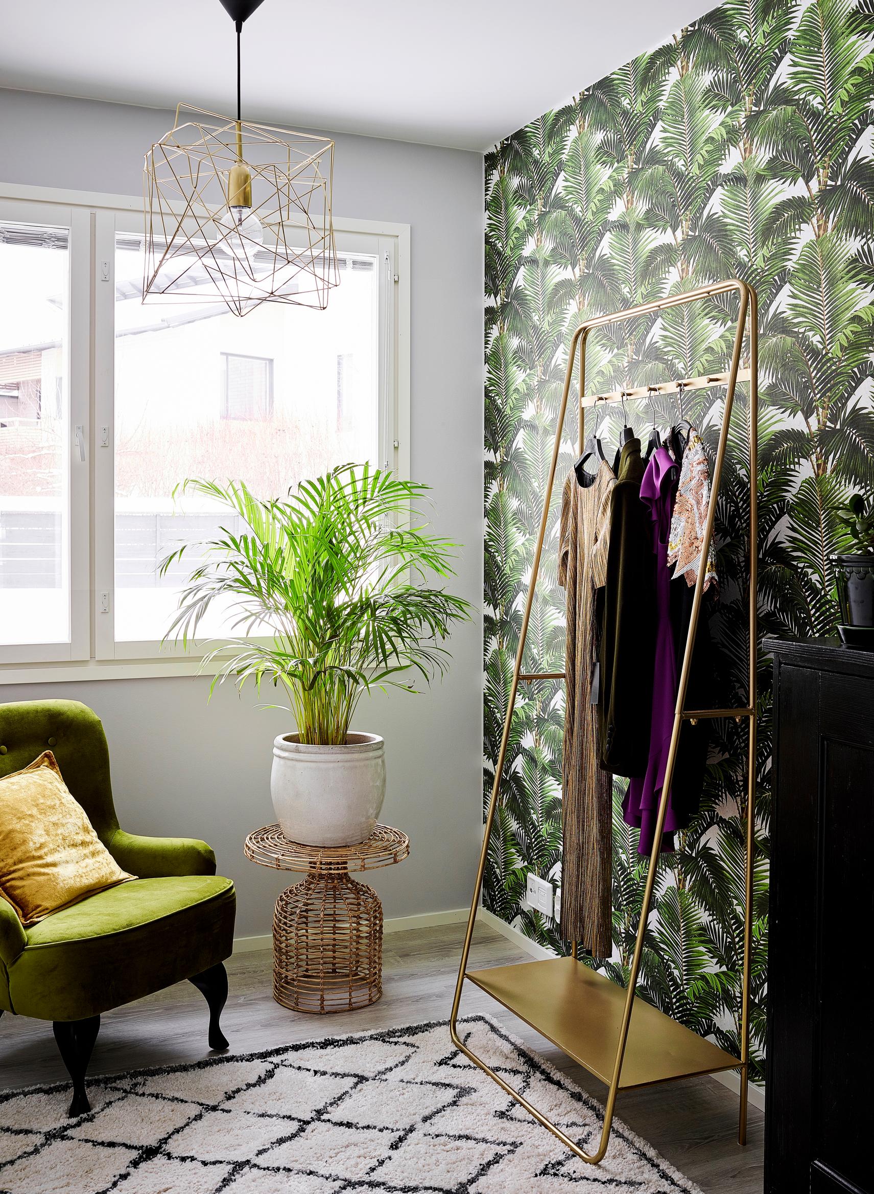 Puvustaja suunnitteli kotinsa sisustuksen Pinterestissä – hillittyä tyyliä rikkoo viidakko ja näyttävä kylppäriratkaisu