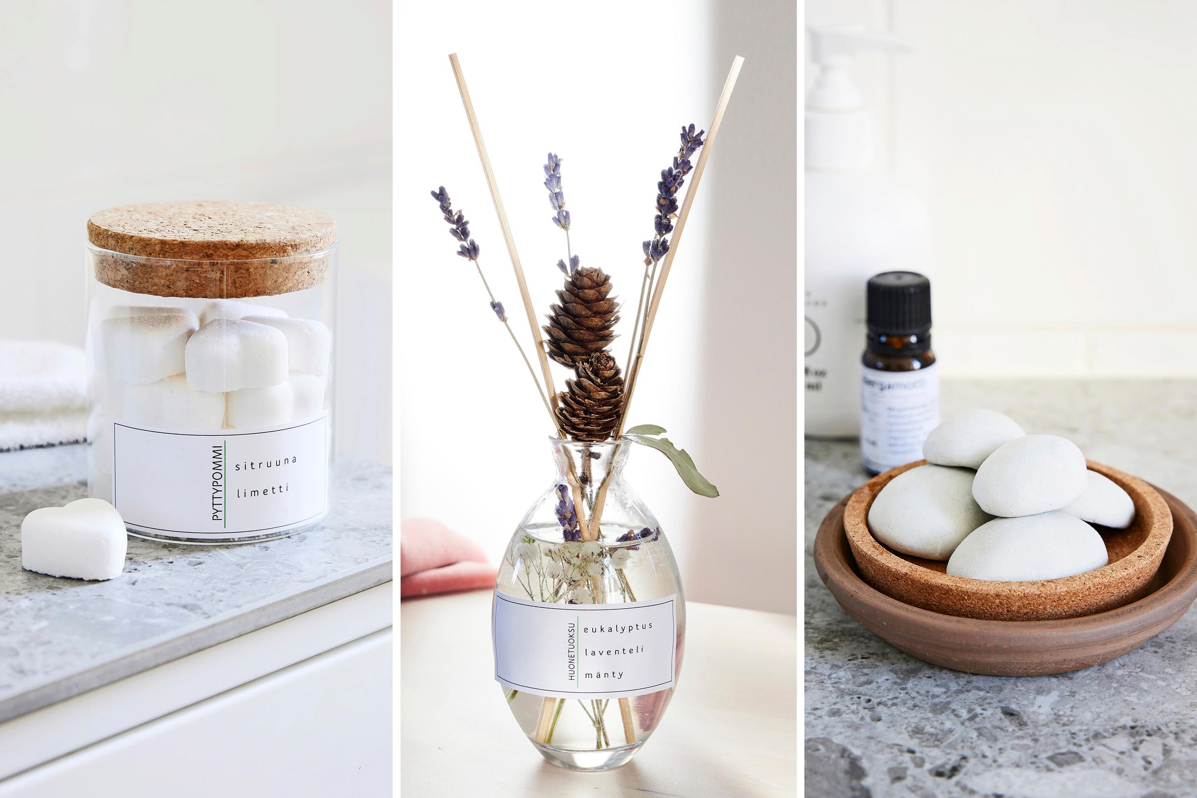 3 × raikas tuoksu kylpyhuoneeseen – näin teet itse pönttöpommit, tuoksukivet ja huonetuoksukimpun