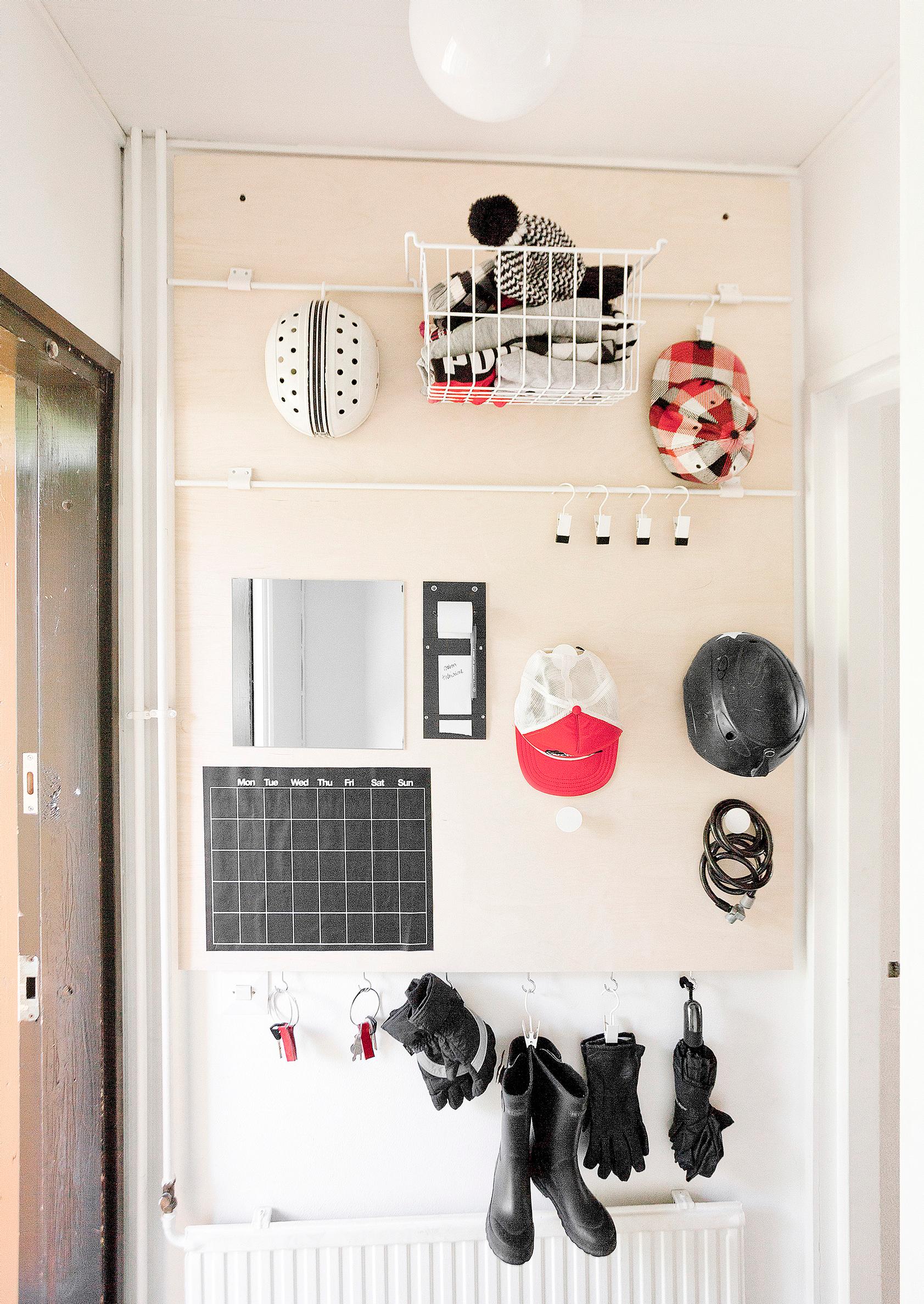 Eikö sopivaa eteisratkaisua löydy valmiina? Nikkaroi itse kätevä säilytysseinä