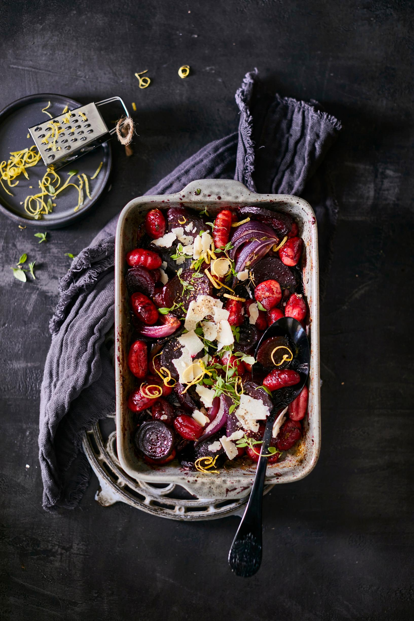Kukapa voisi vastustaa punajuuria – niiden syvän purppuraista väriä ja makeaa makua. Tätä uuniruokaa haarukoituasi rakastut myös perunagnoccheihin. Punajuuri-gnocchivuoan maun salaisuus ovat hunaja ja balsamiviinietikka, jotka korostavat ainesten makuja.