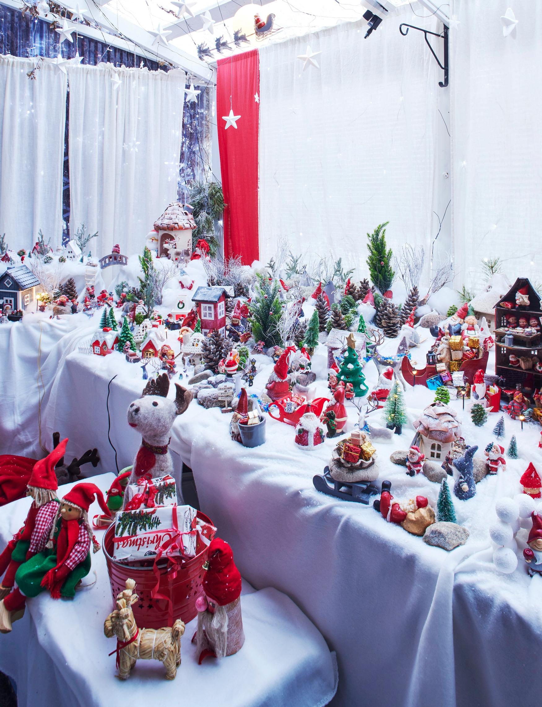 Riitan joulumaailma täyttää koko terassin: ”Tonttulandian vanhimmat tontut ovat 30 vuoden takaa”