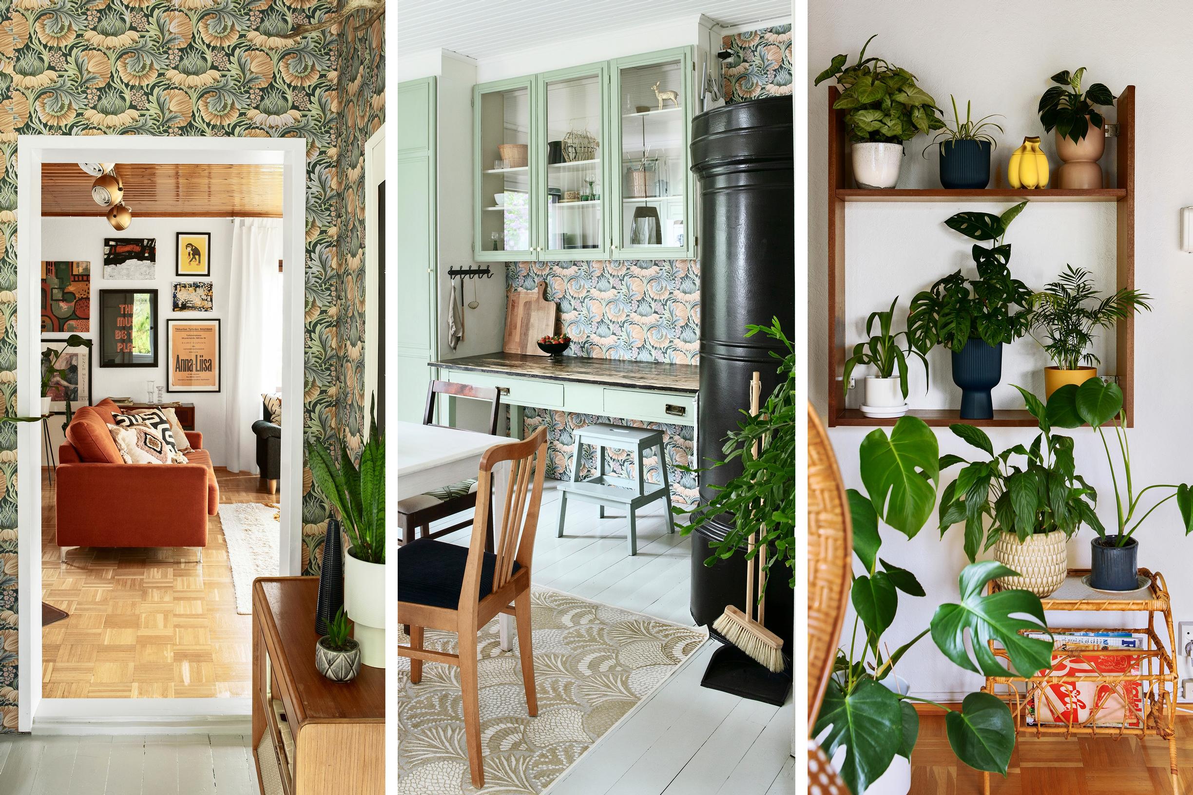Veera ei pitänyt itseään aikaisemmin viherkasvi-ihmisenä, mutta onnistuminen peikonlehden jakamisessa innosti hankkimaan lisää kasveja, joita on ripoteltu tuomaan vihreyttä sinne tänne.