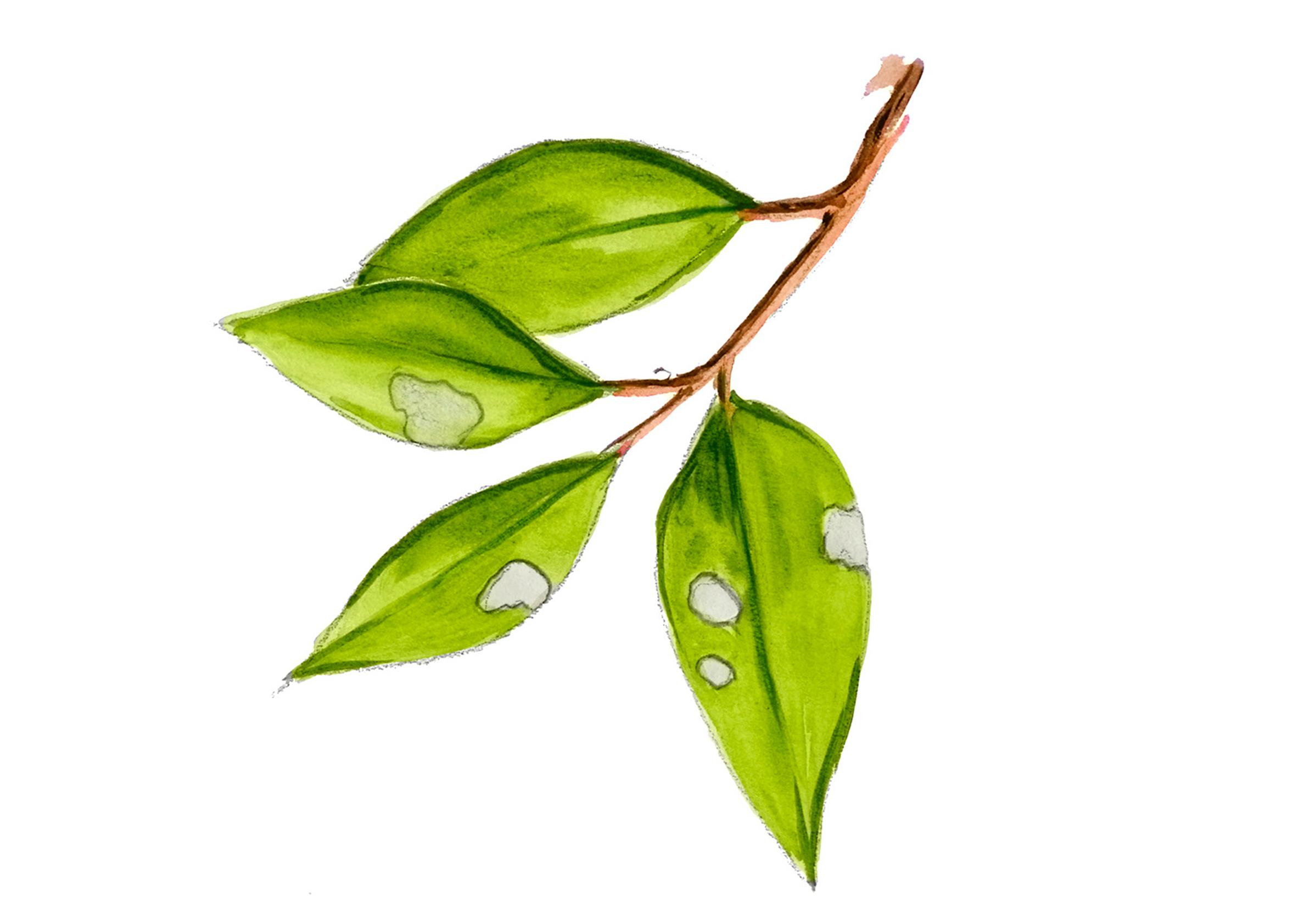 - Vioitus näkyy pistemäisinä tai viirumaisina laikkuina lehdissä. Niiltä voi löytyä myös mustaa, kiiltävää ulostetta pistemäisinä riveinä.