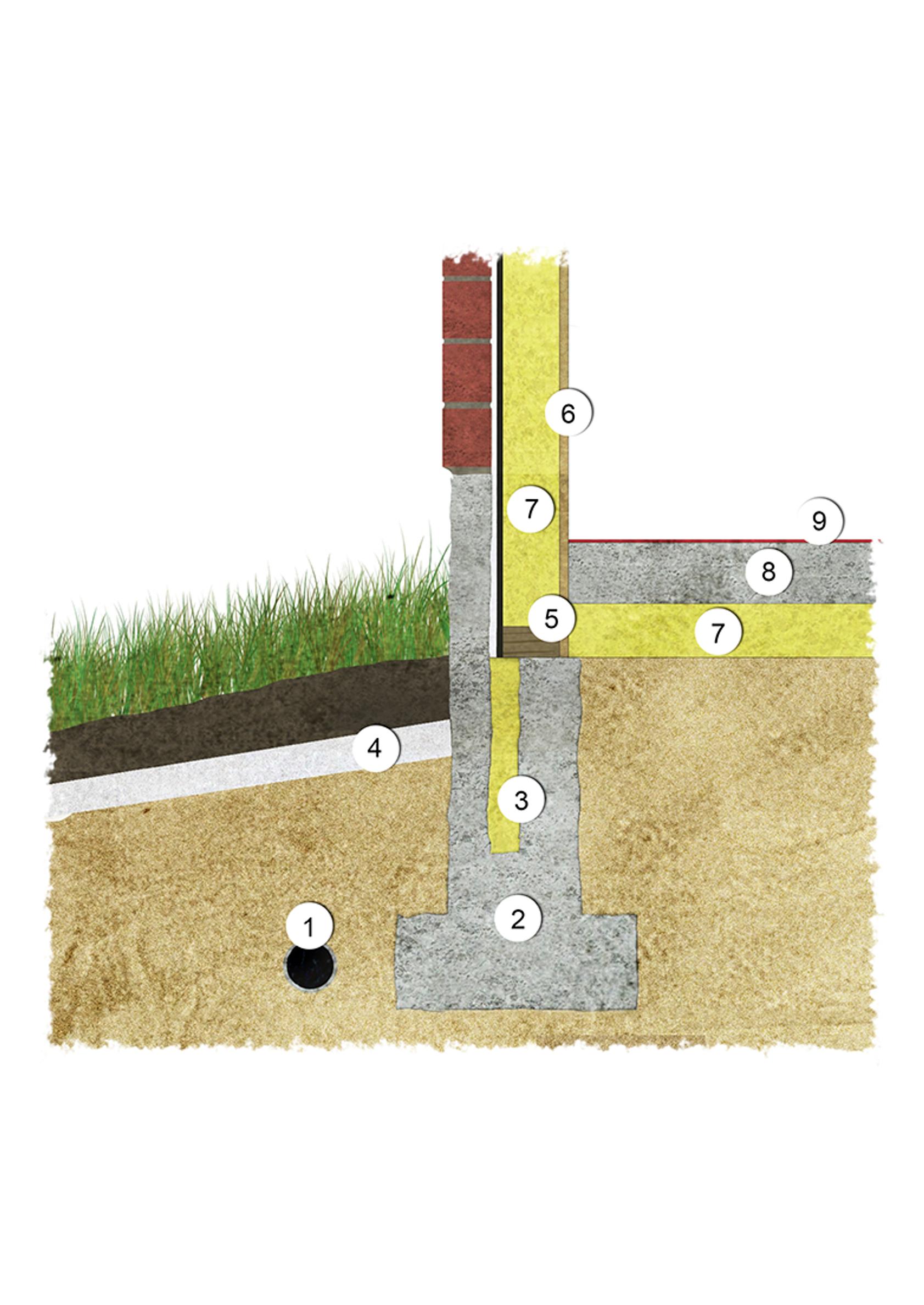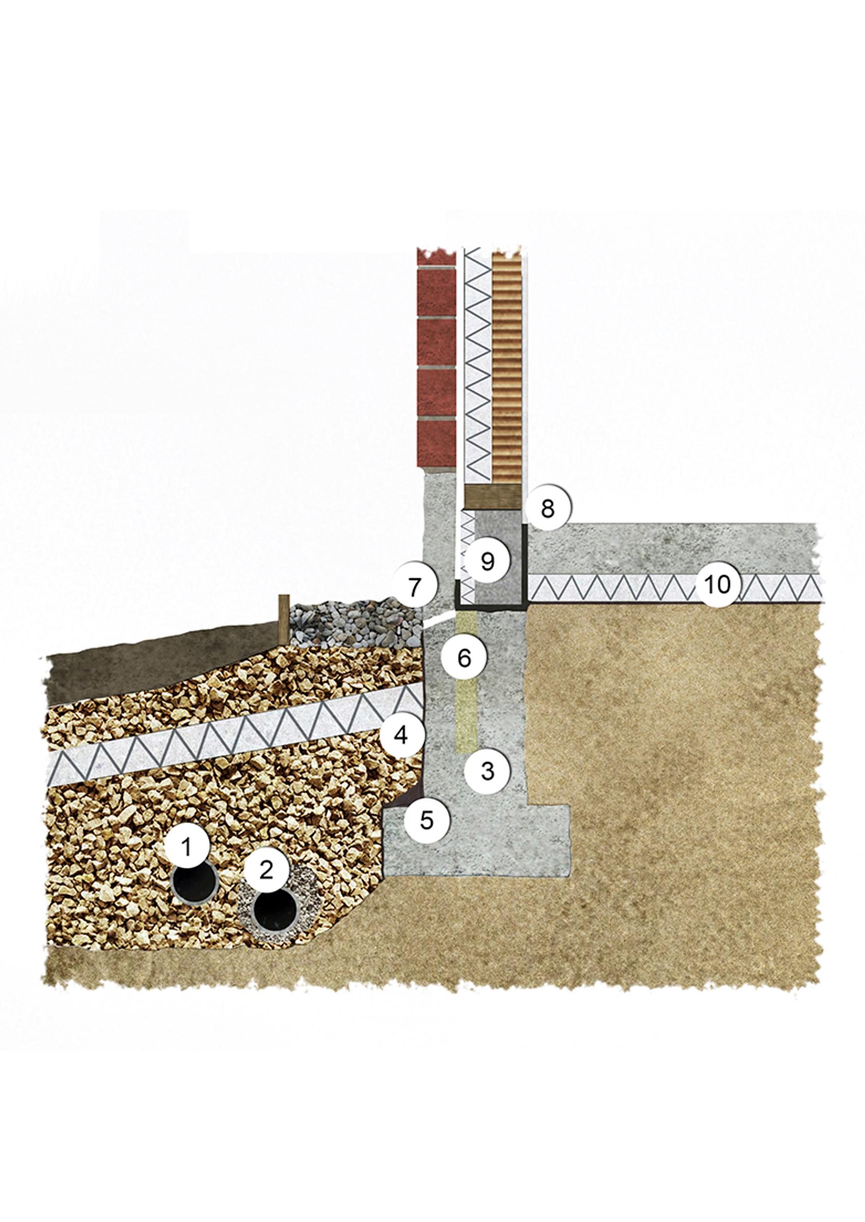 Anturan nurkkaan tuli viistevalu ja kivijalan pintaan patolevy. Kaivanto täyttyi salaojasoralla ja täytön yläosaan tuli viistosti routaeriste. Lopuksi varmistettiin pintamaan riittävä kaltevuus, noin 15 senttimetriä kolmen metrin matkalla.