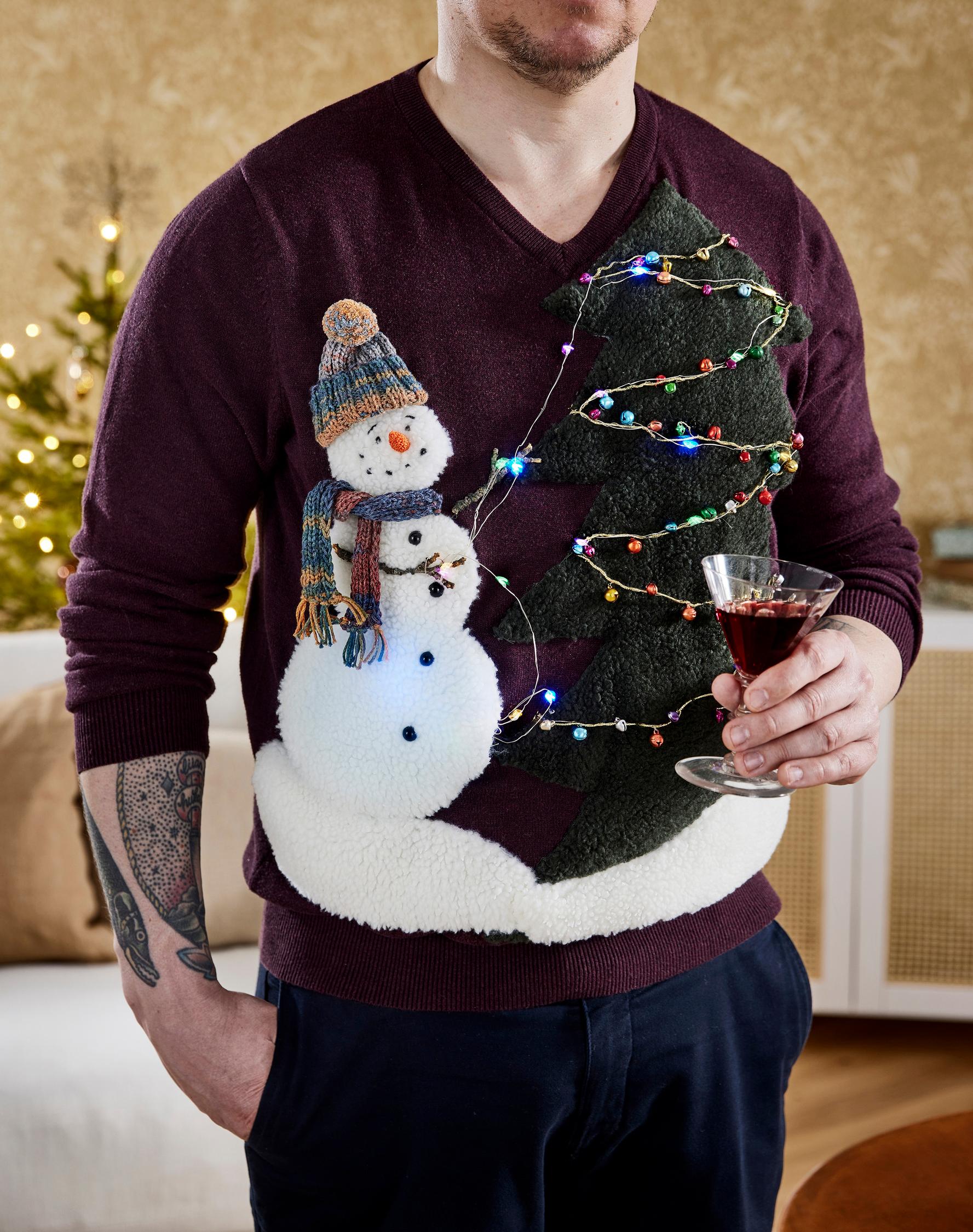 Rumankaunis joulupaita tuunataan vanhasta neuleesta – lumiukolla ja valoilla koristeltu paita ilahduttaa kaikenikäisiä