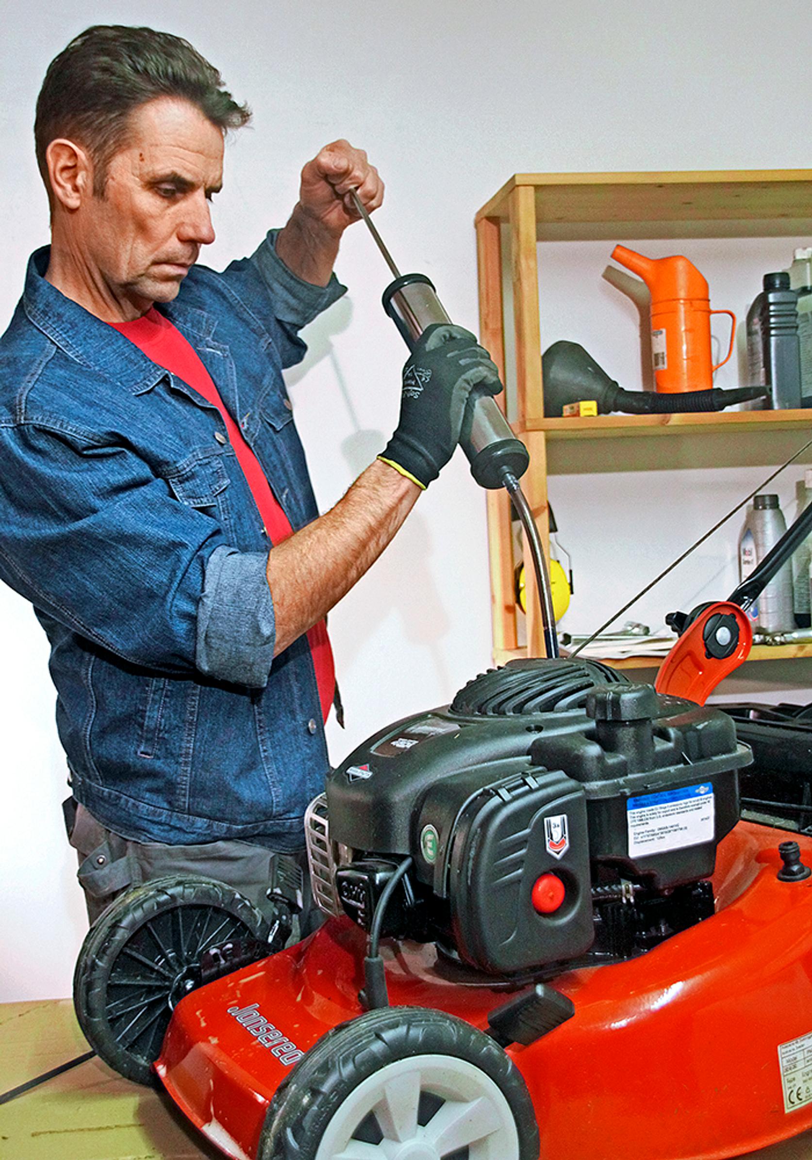 Ruohonleikkurin huolto kannattaa tehdä joko kauden alkajaisiksi tai päätteeksi, niin se pärähtää seuraavallakin kerralla vaivatta käyntiin.Kun moottorissa on öljyä, ruohonleikkuria kallistetaan niin, että sytytystulppa jää ylöspäin. Silloin öljy ei valu moottorin palotilaan ja vaikeuta käynnistymistä.
