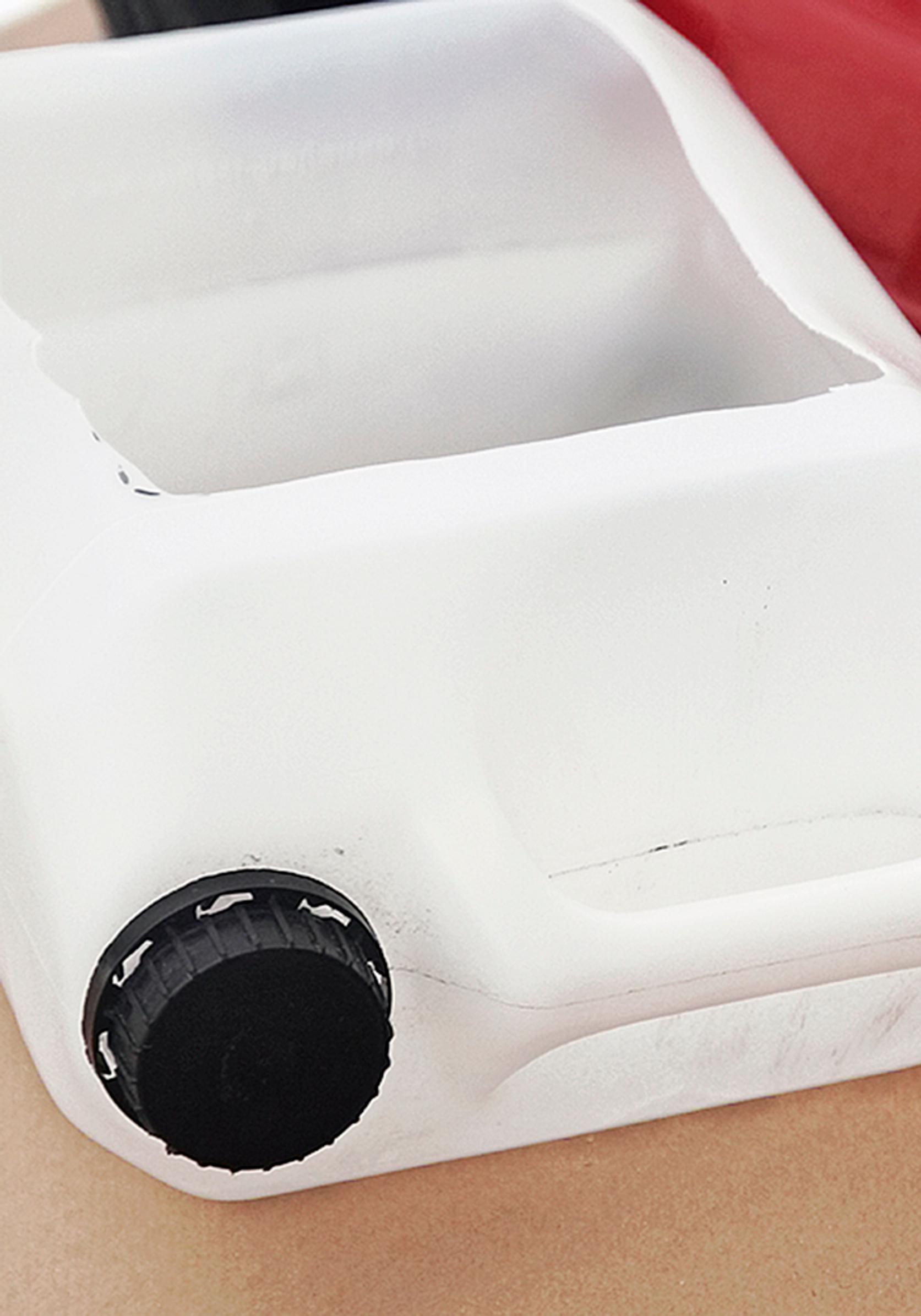 2. Voit askarrella astian jäteöljyä varten vaikkapa tyhjästä muovikanisterista. Jäteöljy ja öljyiset jätteet, kuten trasselit ja pyyhkeet, ovat ongelmajätettä. Huomioi oman kuntasi ohjeet kotitalouksien ongelmajätteiden hävittämisestä.