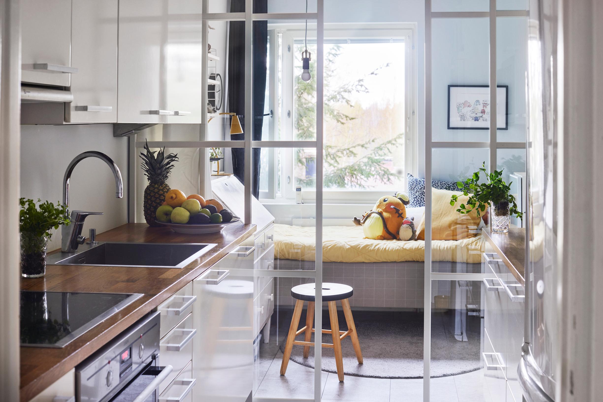Kolmiosta neliöksi – näin ruokahuoneesta tuli makuuhuone
