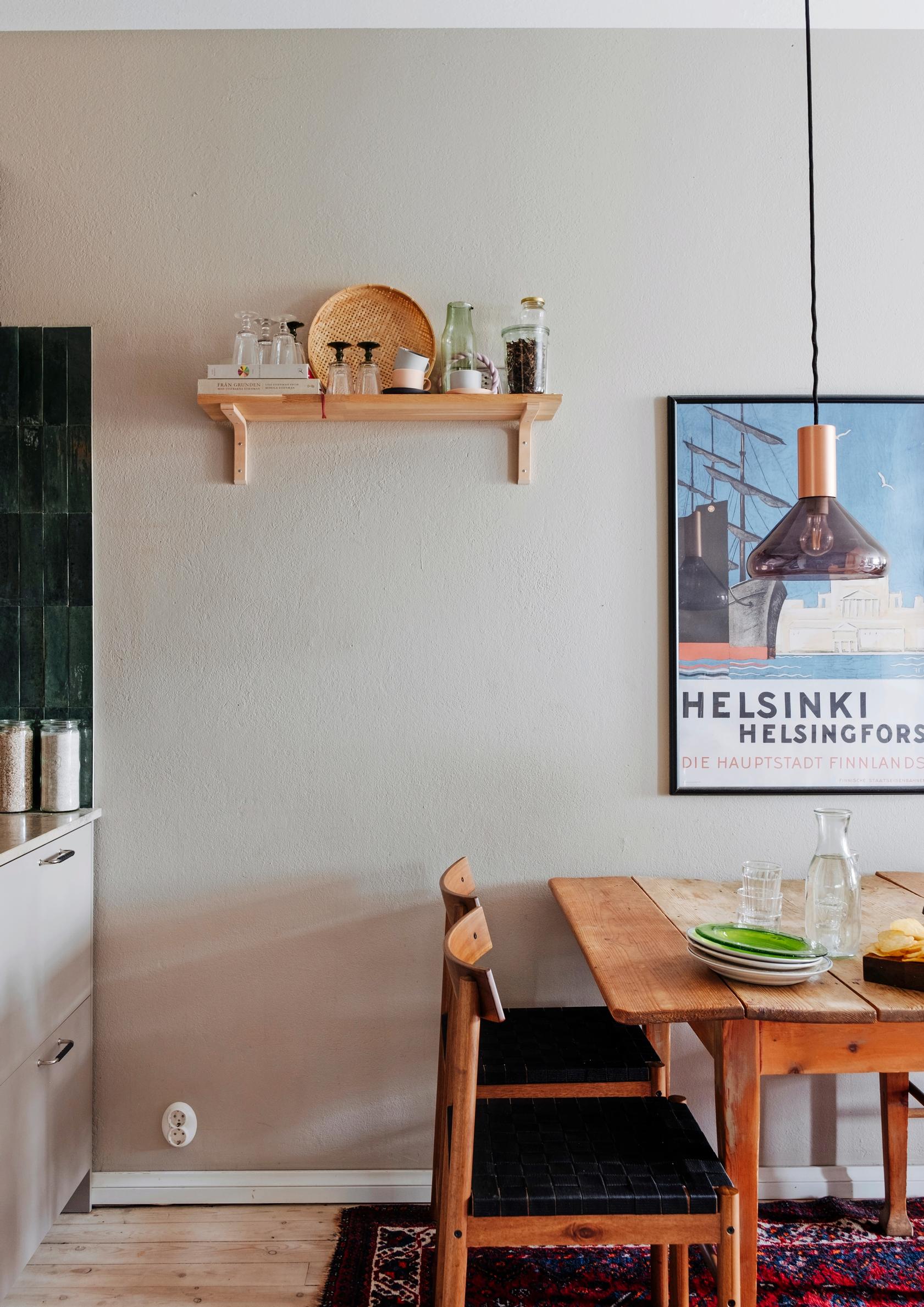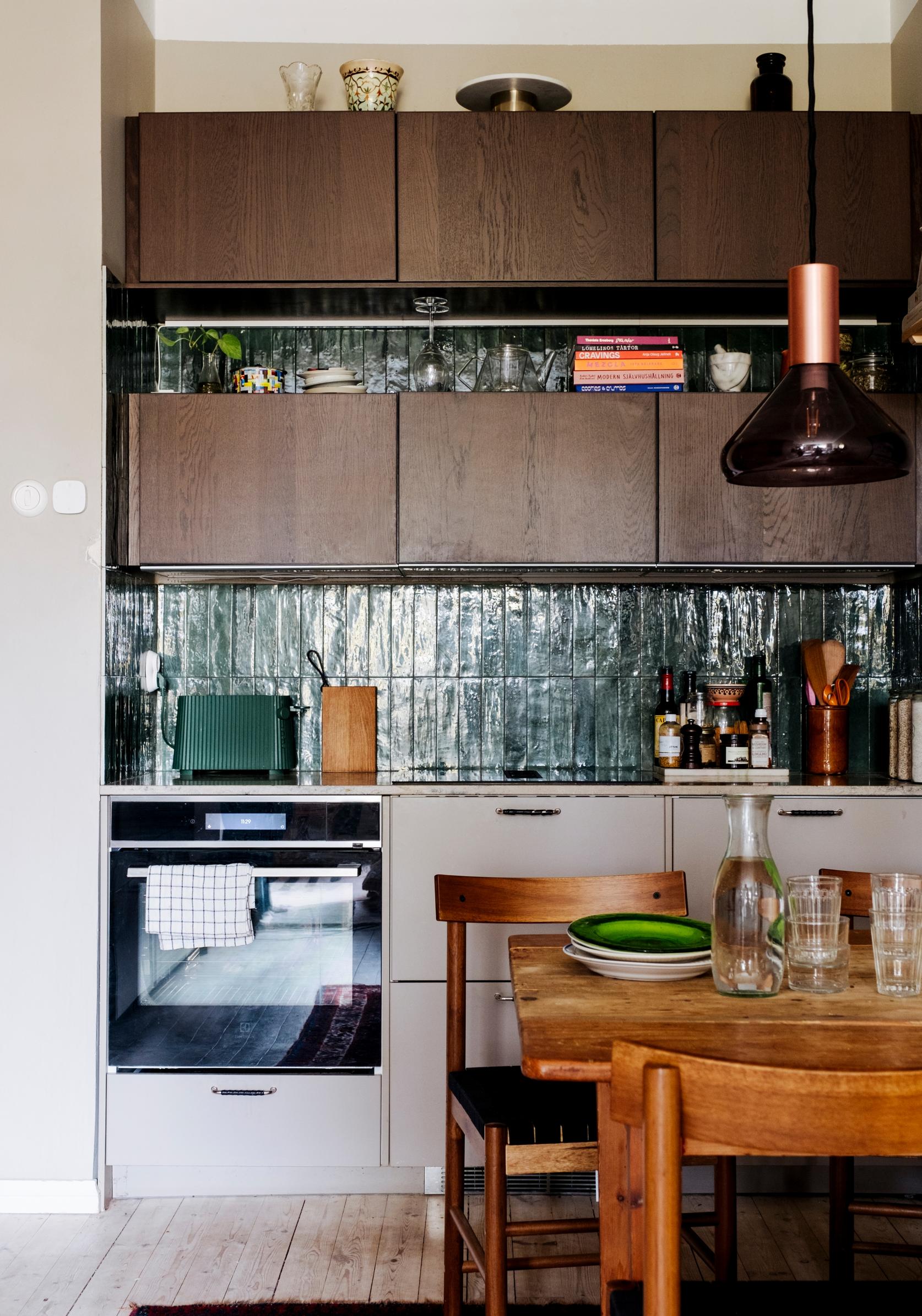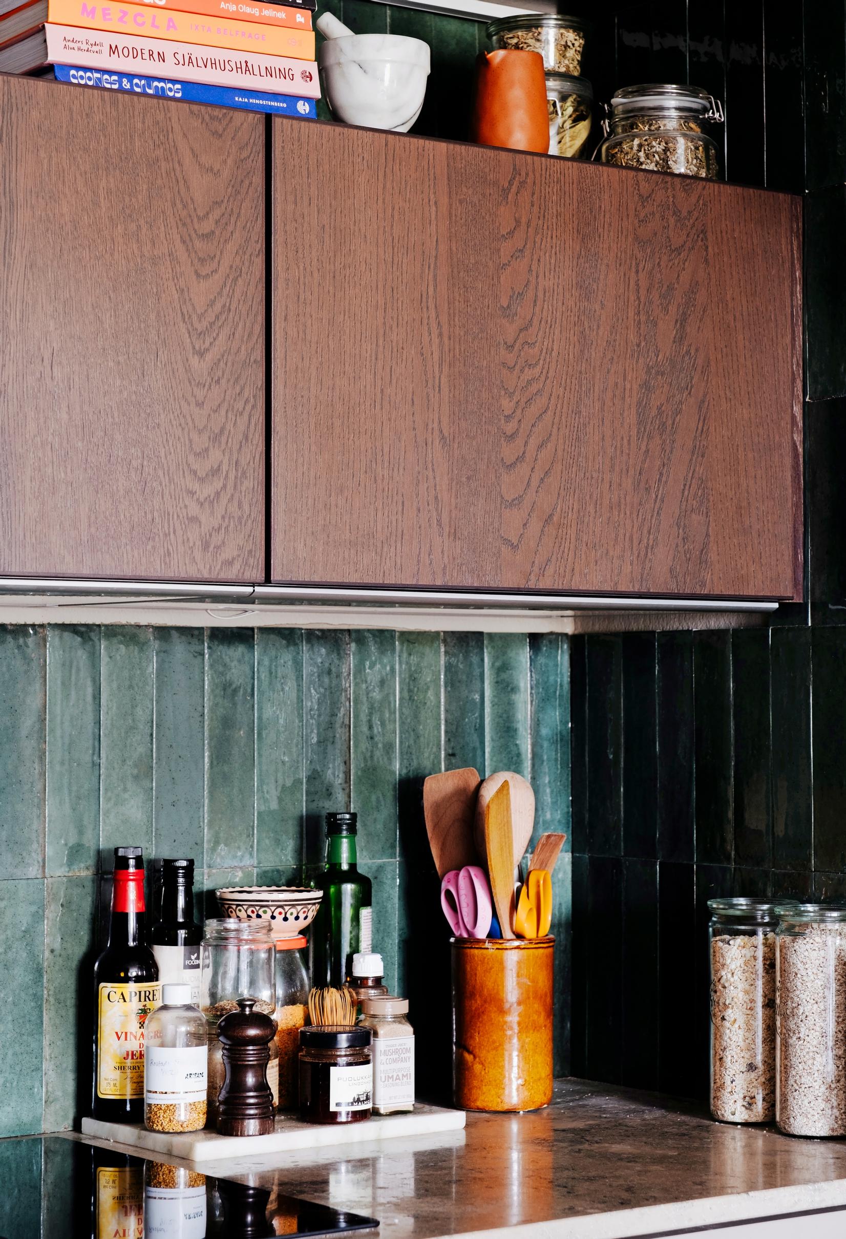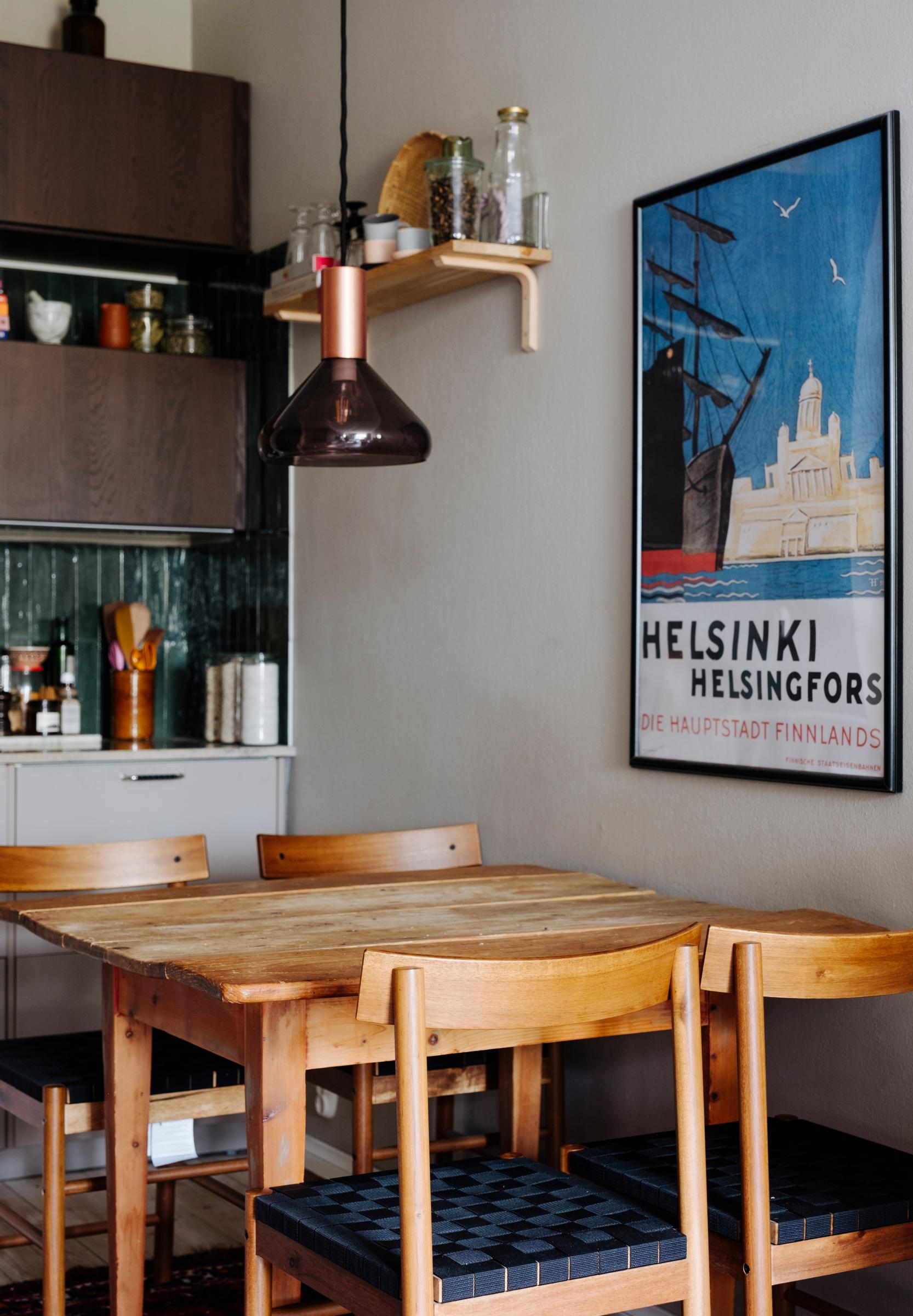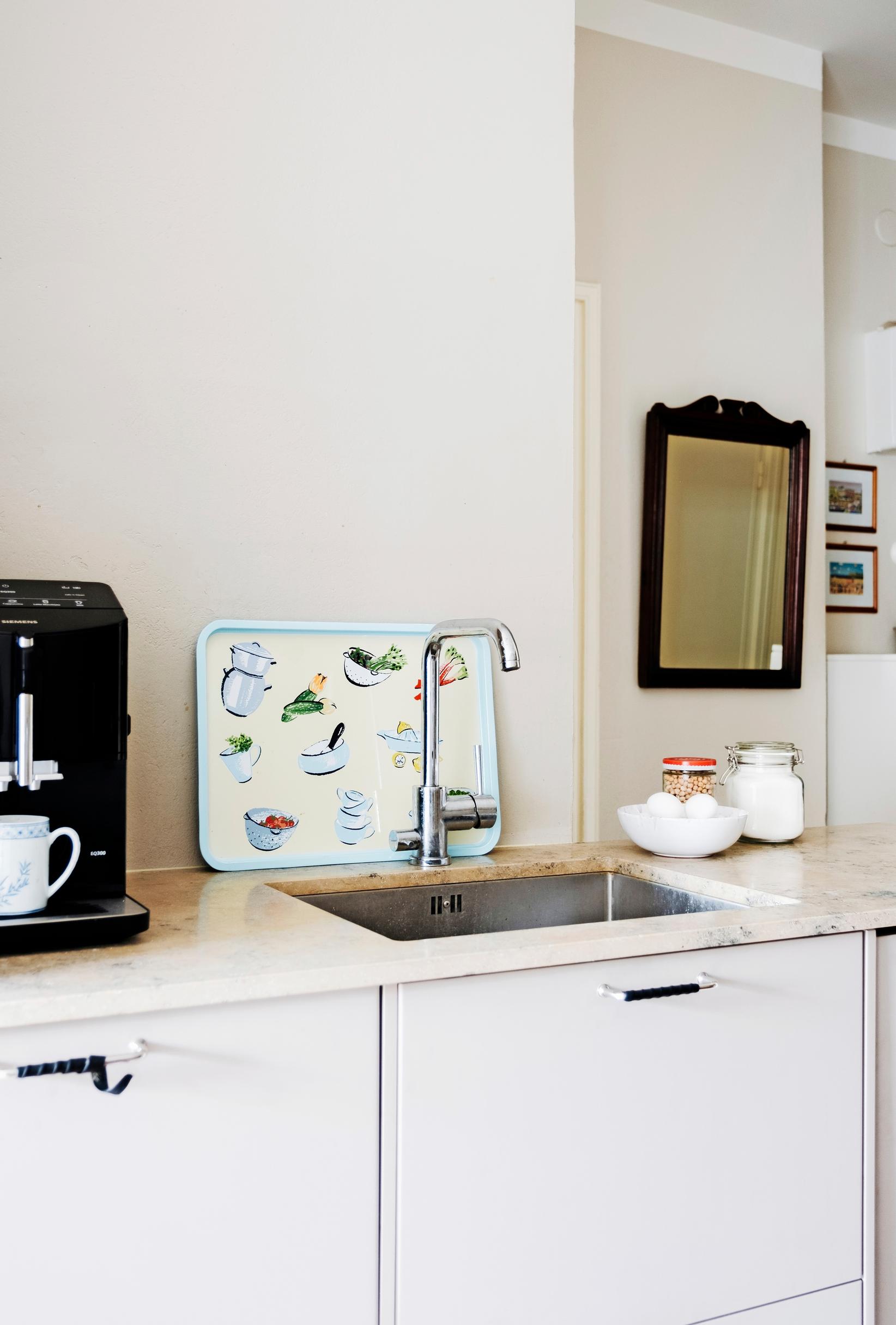 Pienet asunnot, joissa on iso keittiö, ovat Kalliossa harvinaisia. Yleensä niihin kuuluu vain keittokomero, mutta me halusimme jotain muuta. Toisaalta emme halunneet ryhtyä remonttiin, ja siksi oikeanlaisen asunnon löytymisessä meni pitkään. Arvostan keittiössä persoonallisuutta. Liian monet keittiötilat ovat moderneja ja värittömän valkoisia, ja se on mielestäni tylsää.