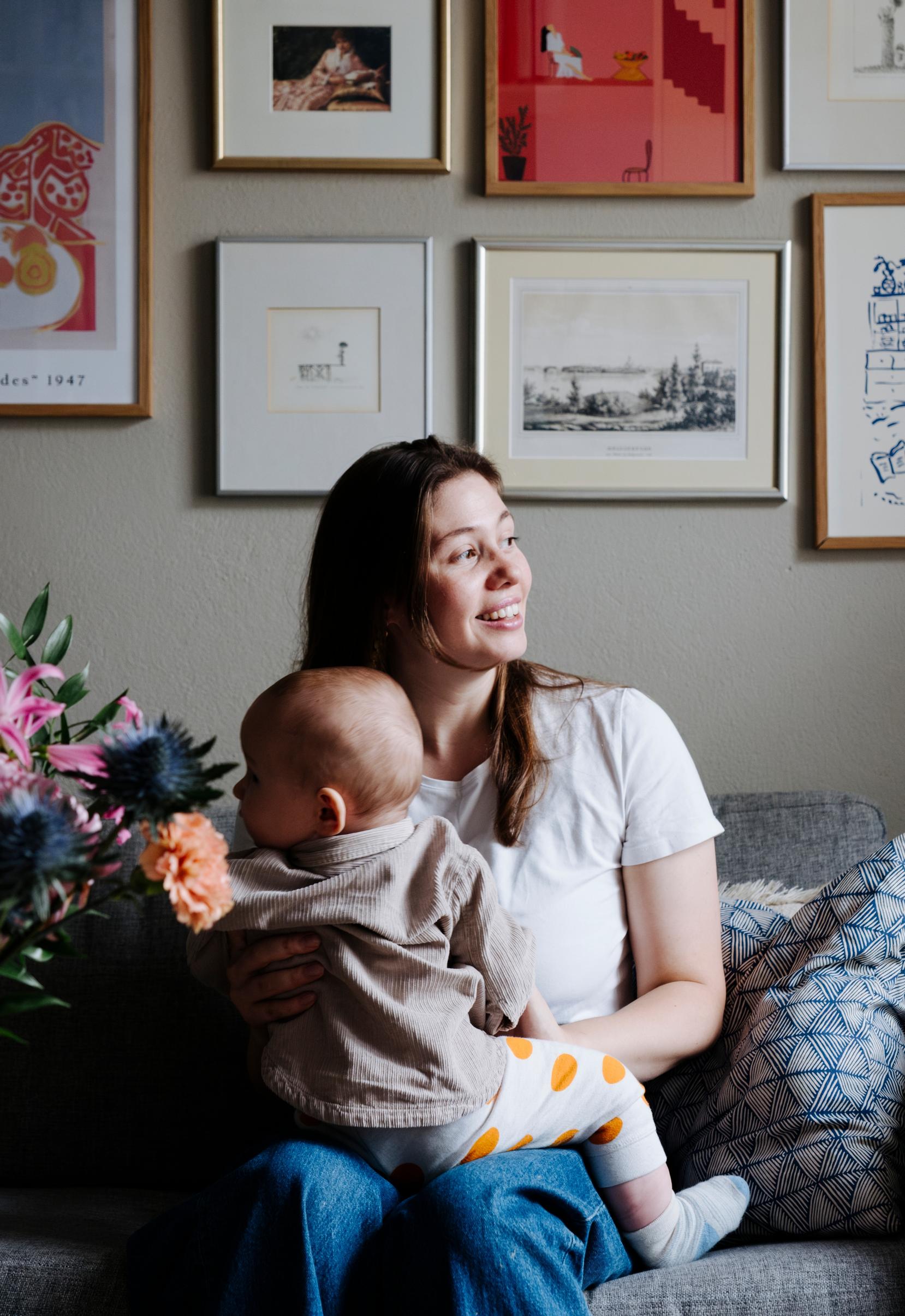 Ostimme kauniin hoitoalustan, koska tiesin, että se tulee olemaan esillä. Sitten hankimme sängyn, syöttötuolin ja lipaston. Mutta se oli alkuvaiheessa kaikki. Nyt kotimme joka ikinen neliö on käytössä, mutta olen silti iloinen siitä, että jäimme tänne. Kun kaikki elämässä joka tapauksessa muuttui, niin sijainti kävelymatkan päässä keskustasta ja lähellä ravintoloita ja kahviloita säilyi. Se oli minulle ehdottomasti tärkeintä.