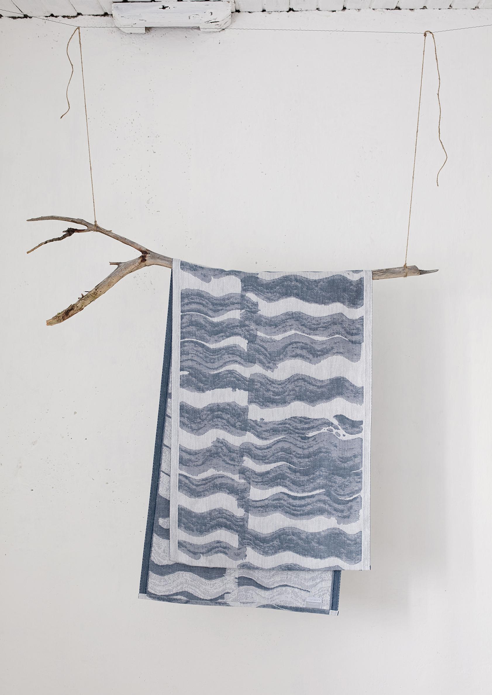 Kesäkodin keveä seinävaate on kaitaliina. Hae metsästä kaunis oksa ja ripusta liina oksalle. Kesäisen seinävaatteen voi tehdä yhtä hyvin omasta lempikankaasta tai vaikka pellavapyyhkeestä. Aallonmurtaja pellavaliina (46 x 150 cm) 36,90 €, Lapuan kankurit.