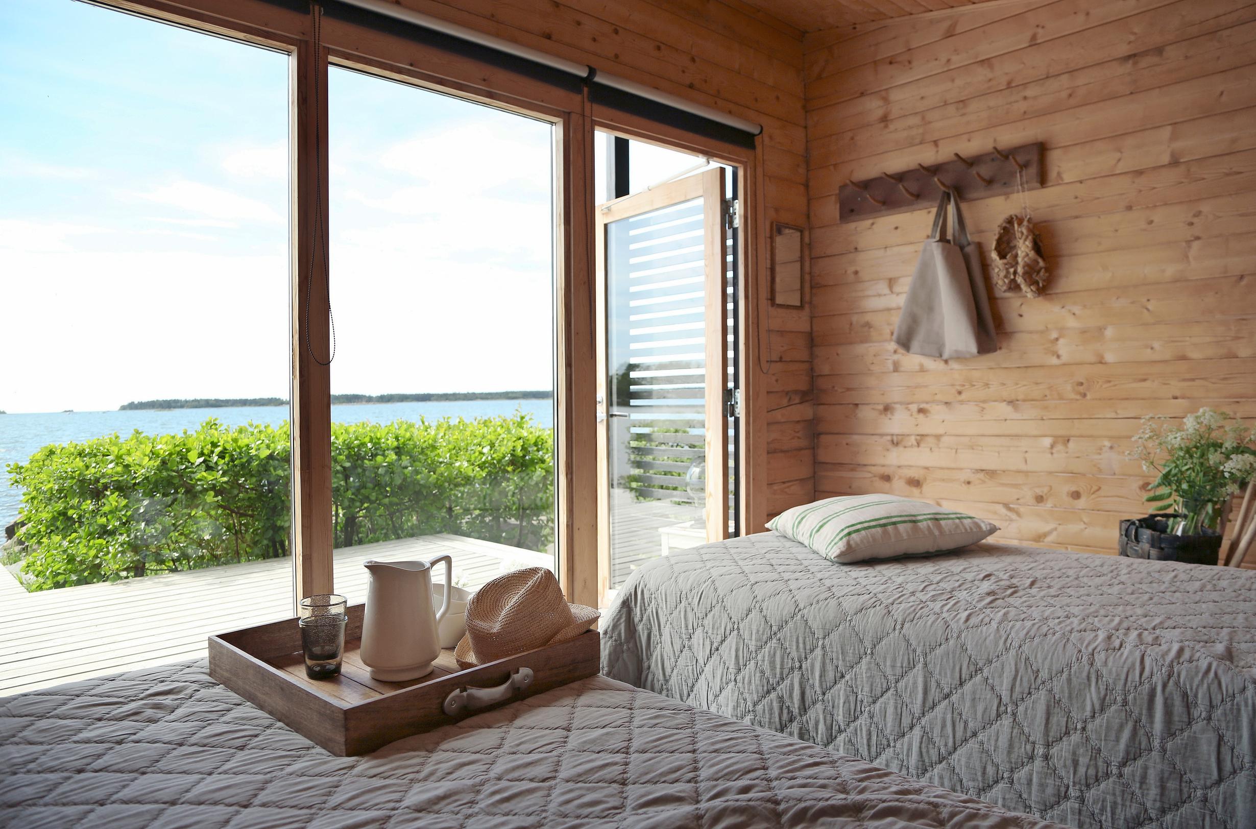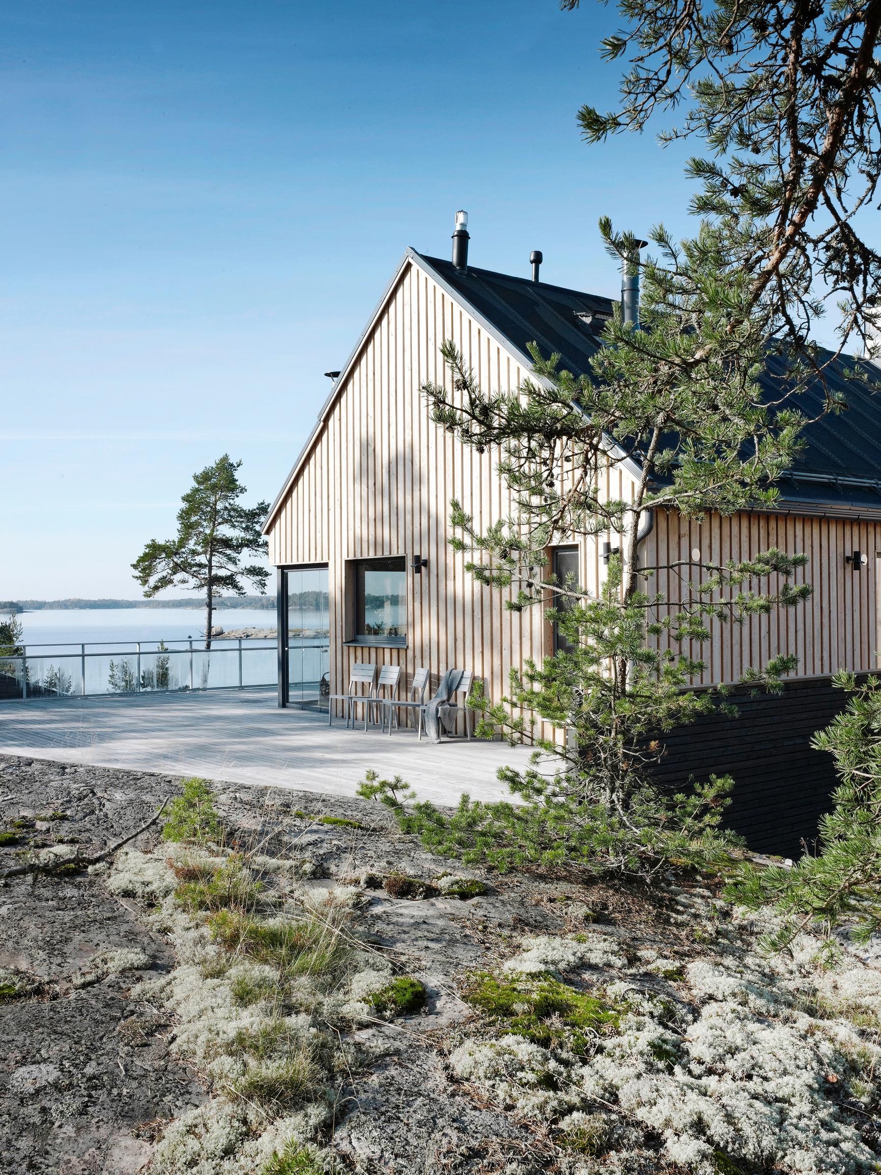 Avarat maisemat ja karu luonto näkyvät saaristomökkien yksinkertaisuudessa. Suuret ikkunat ja korkealle nousevat harjakatot luovat avaruutta sisällekin. Täällä on tilaa hengittää!