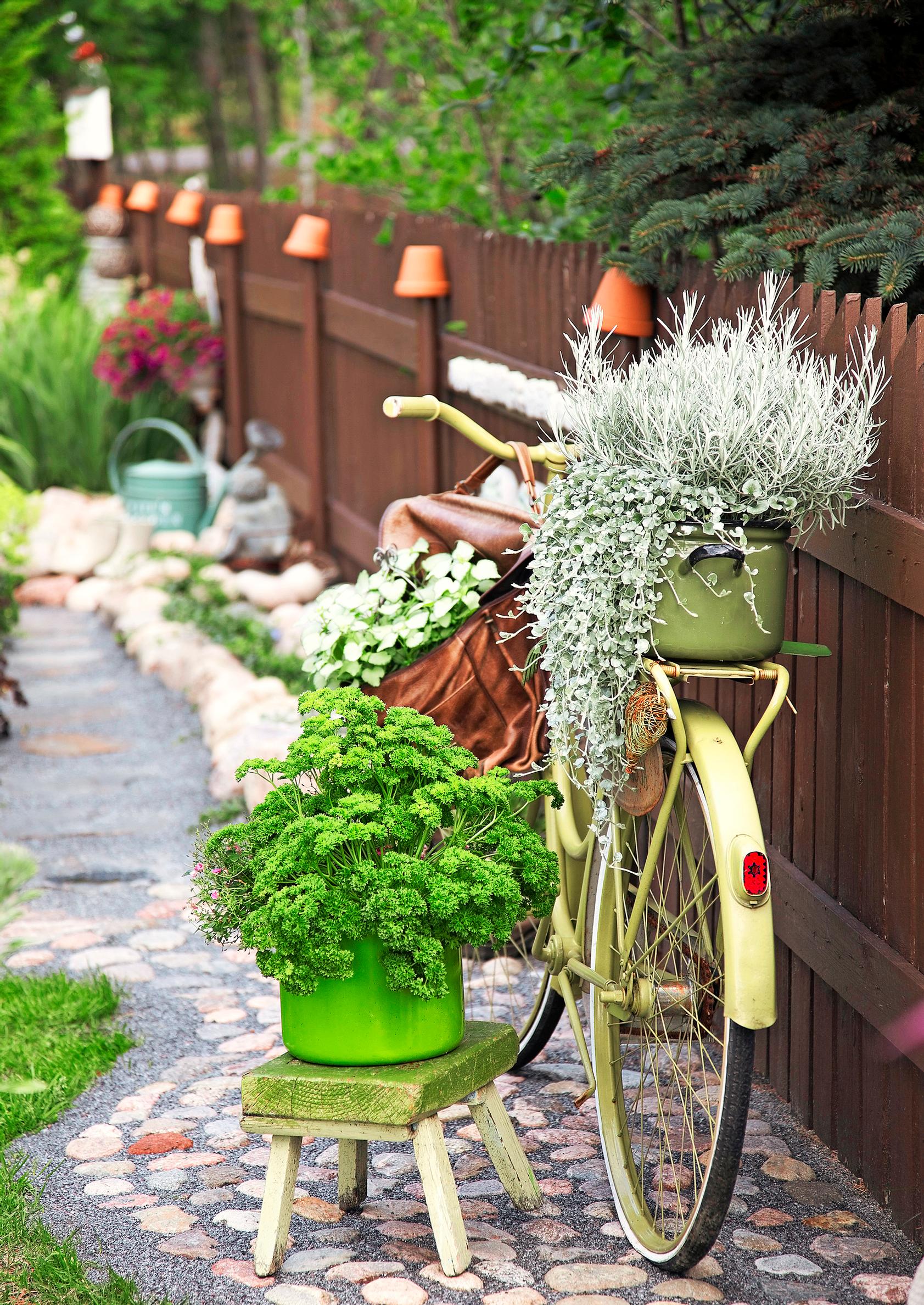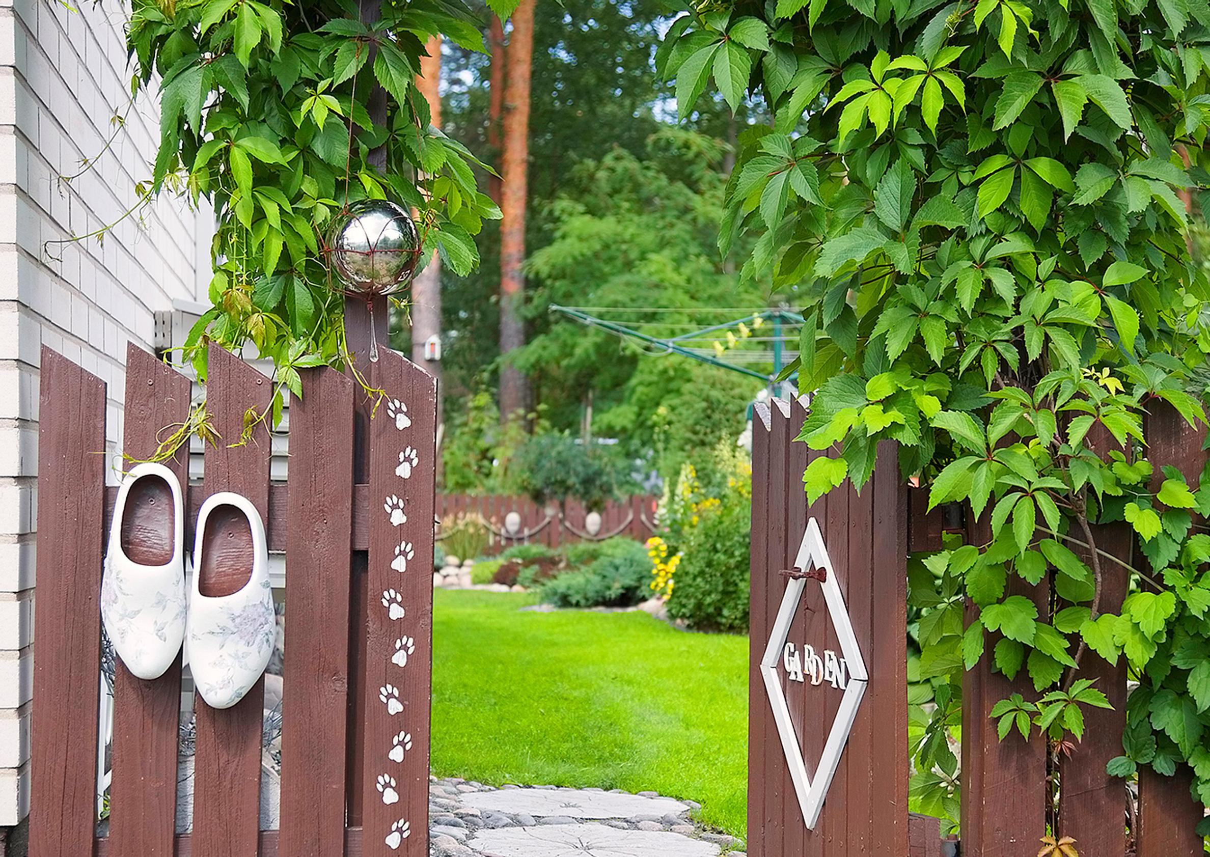 Räikkösten puutarhan runsaista koristeista valtaosa on itse tehtyjä tai kierrätystavaraa. Elämää nähneillä, muistoja kantavilla tavaroilla ja omien käsien tuotoksilla Satu Räikkönen on saanut luotua puutarhaansa persoonallisen tunnelman, jossa näkyy hänen rikas mielikuvituksensa, huumorintajunsa sekä rakkautensa kaikkeen kauniiseen.