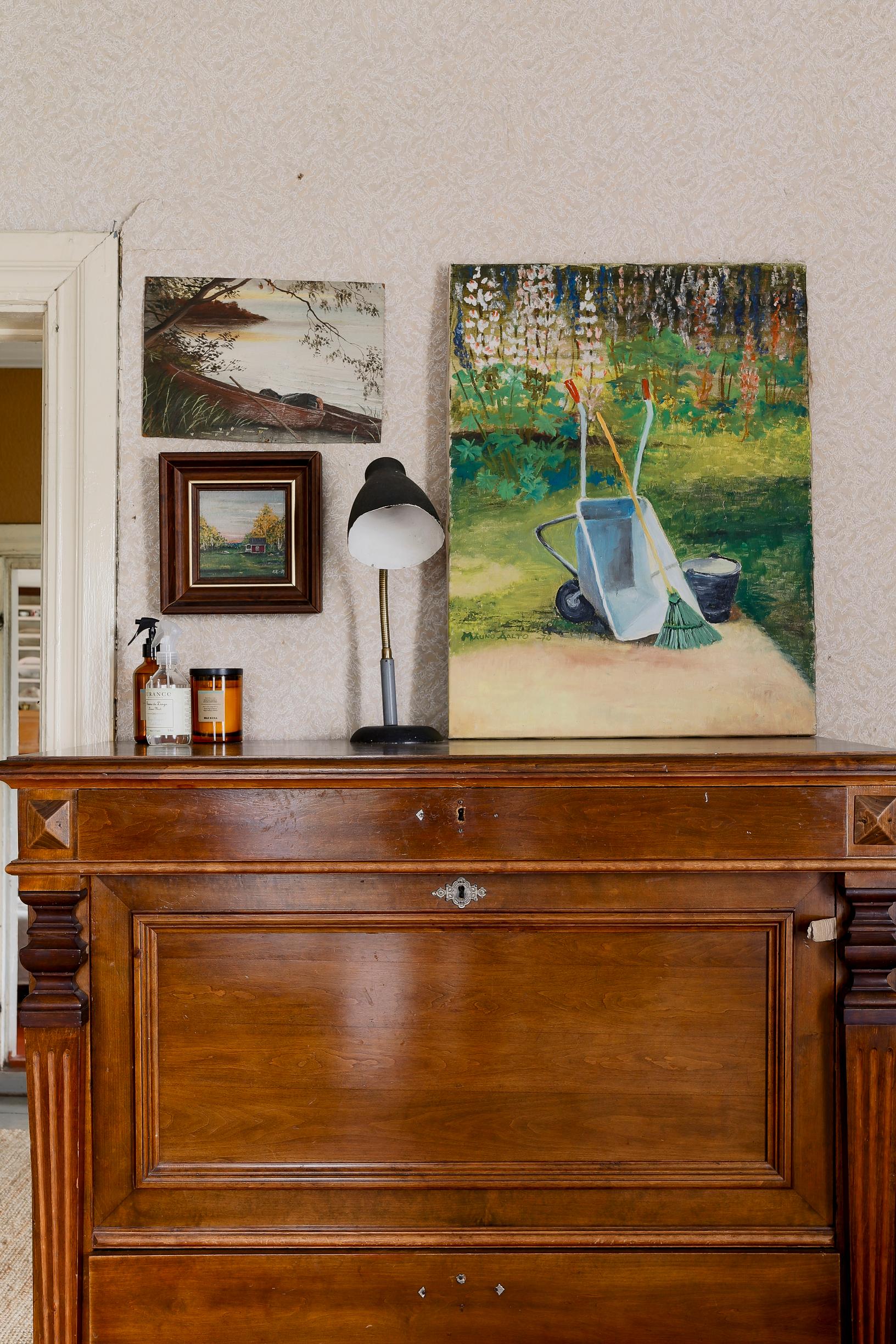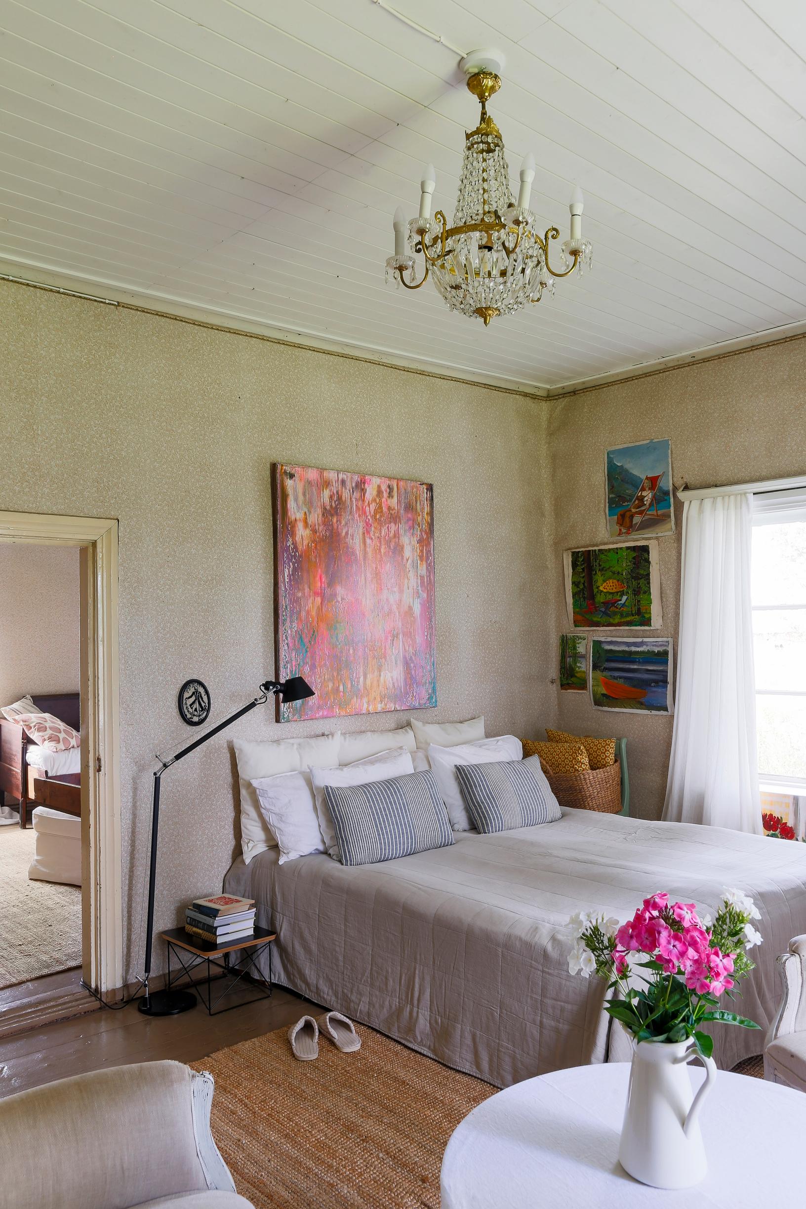 Heti ensimmäisistä päivistä alkaen sieluni kirjaimellisesti lepäsi. Oli kuin minut olisi aidosti tarkoitettu tähän taloon. Hyppäsin samoihin aikoihin myös vapaaksi kirjailijaksi, joten remonttirahaa ei juurikaan ollut. Mikä onni se olikaan, sillä monet ensimmäisen vuoden suunnitelmistani tuntuvat nyt aivan hupsuilta. Olen kiintynyt jopa makuuhuoneeni pittoreskisti kulahtaneisiin tapetteihin.