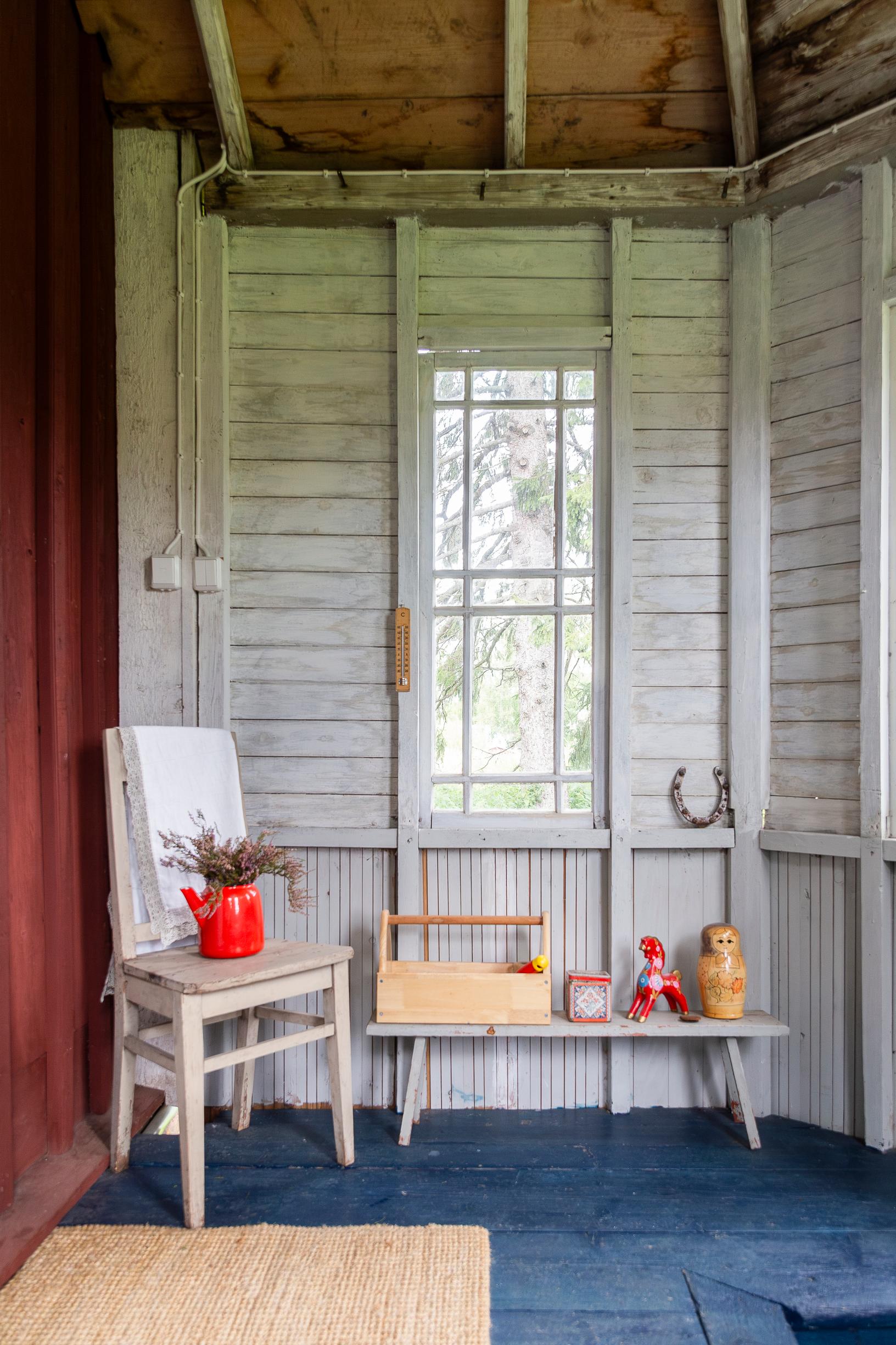 Kompostoiva huussi oli ihan ensimmäinen iso hankinta. Kesävesi tuli talolle, mutta sähköt piti uusia. Myös pari alakattoa oli pakko fiksata, mutta muuten talo on hämmentävän hyvässä kunnossa. Se seisoo ryhdikkäästi tukevan kivijalan päällä. Missään ei haise home tai kosteus. Taloa ei ole putkitettu, enkä aio sitä tehdäkään.