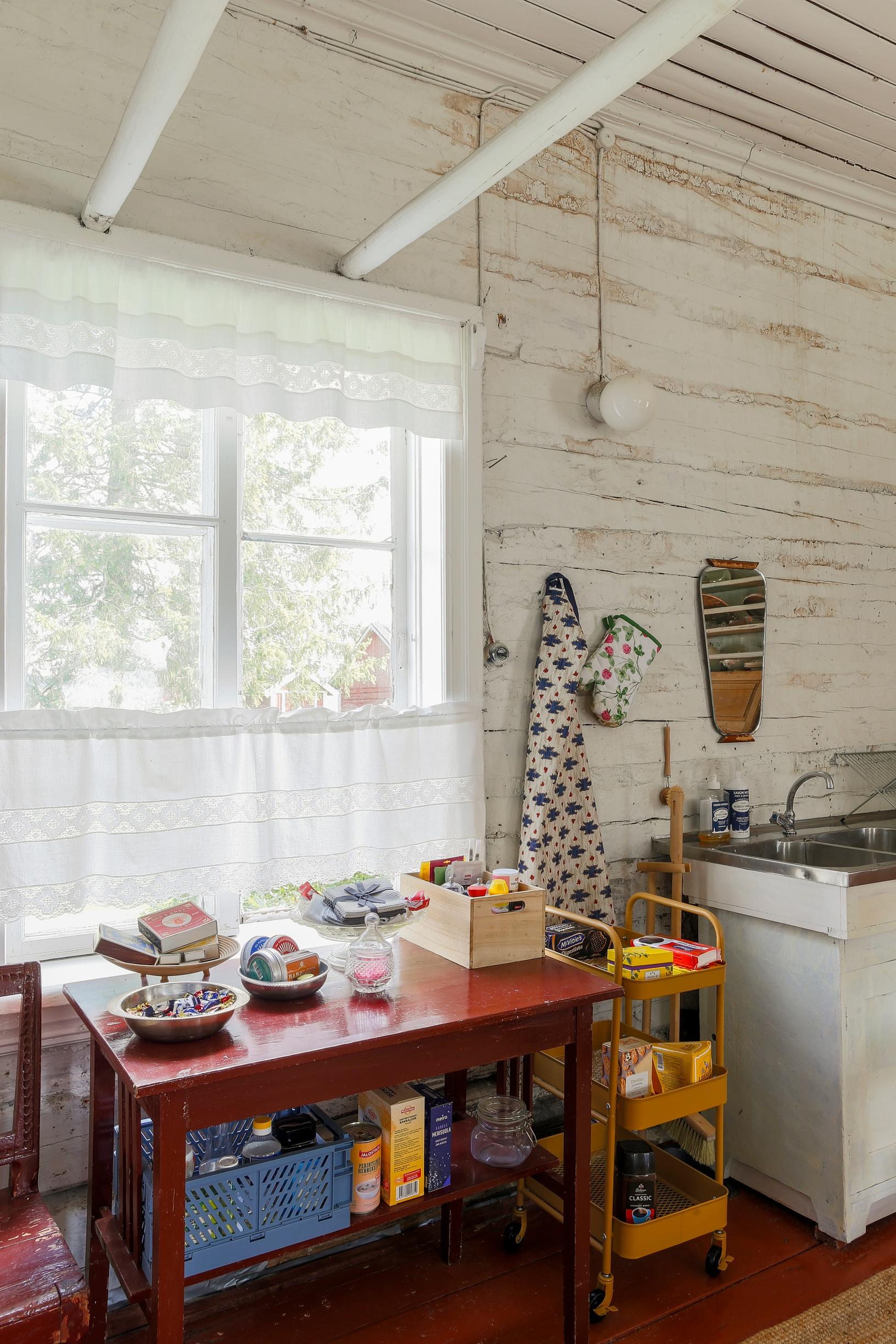 Tupaan tulee ilmalämpöpumppu. Seuraavaksi prioriteettilistalla on katon uusiminen ja hormien tyhjennys, sillä niissä on jopa 40 vuoden ajalta naakan pesiä. Tarvitsen jatkossa myös talveksi vettä, joten suunnitelmissa on lisäksi pienen lämmitetyn ja putkitetun pesutilan rakentaminen pihan luhtiin.