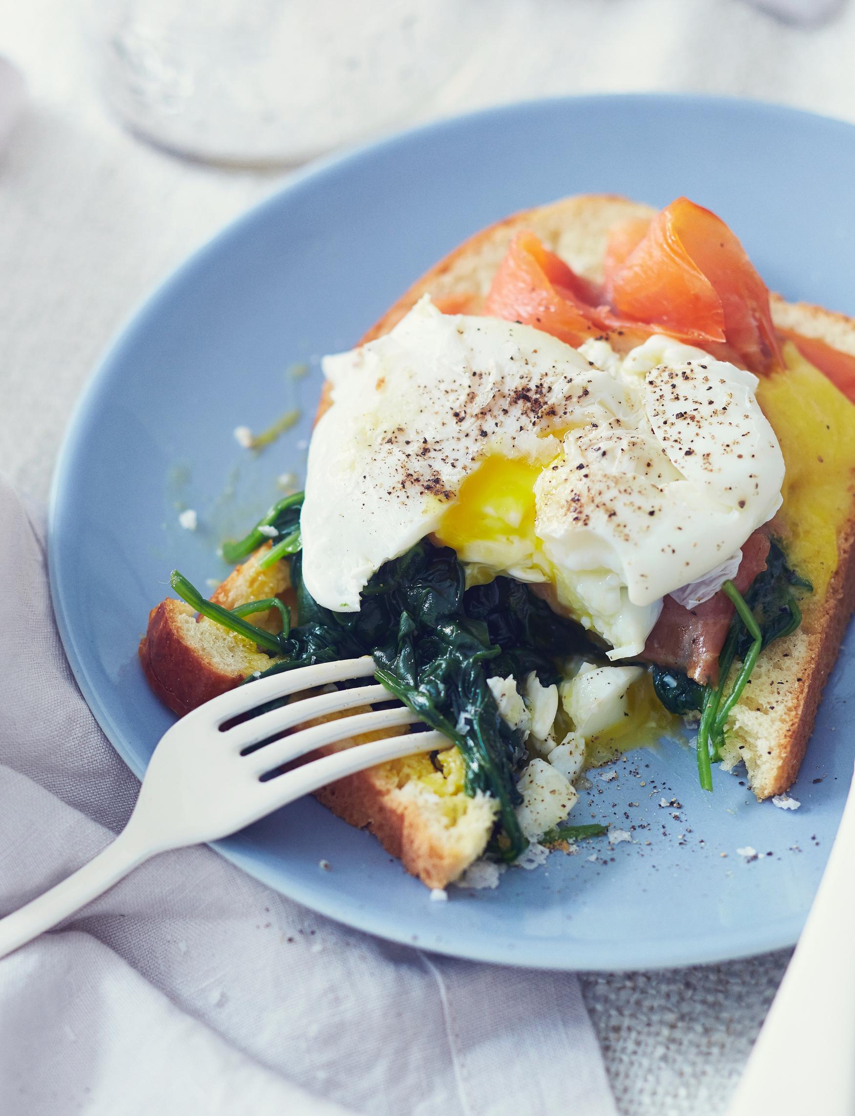 Kiinnostaisiko sittenkin lohiversio? Tässä alkuperäisten Benedictin leipien herkullisessa muunnoksessa kinkku on korvattu kylmäsavulohella ja mehevyyttä tuovat pinaatti ja hollandaisekastike. Aina on lupa myös vähän oikaista, ja käyttää leipiin valmista hollandaisekastiketta.