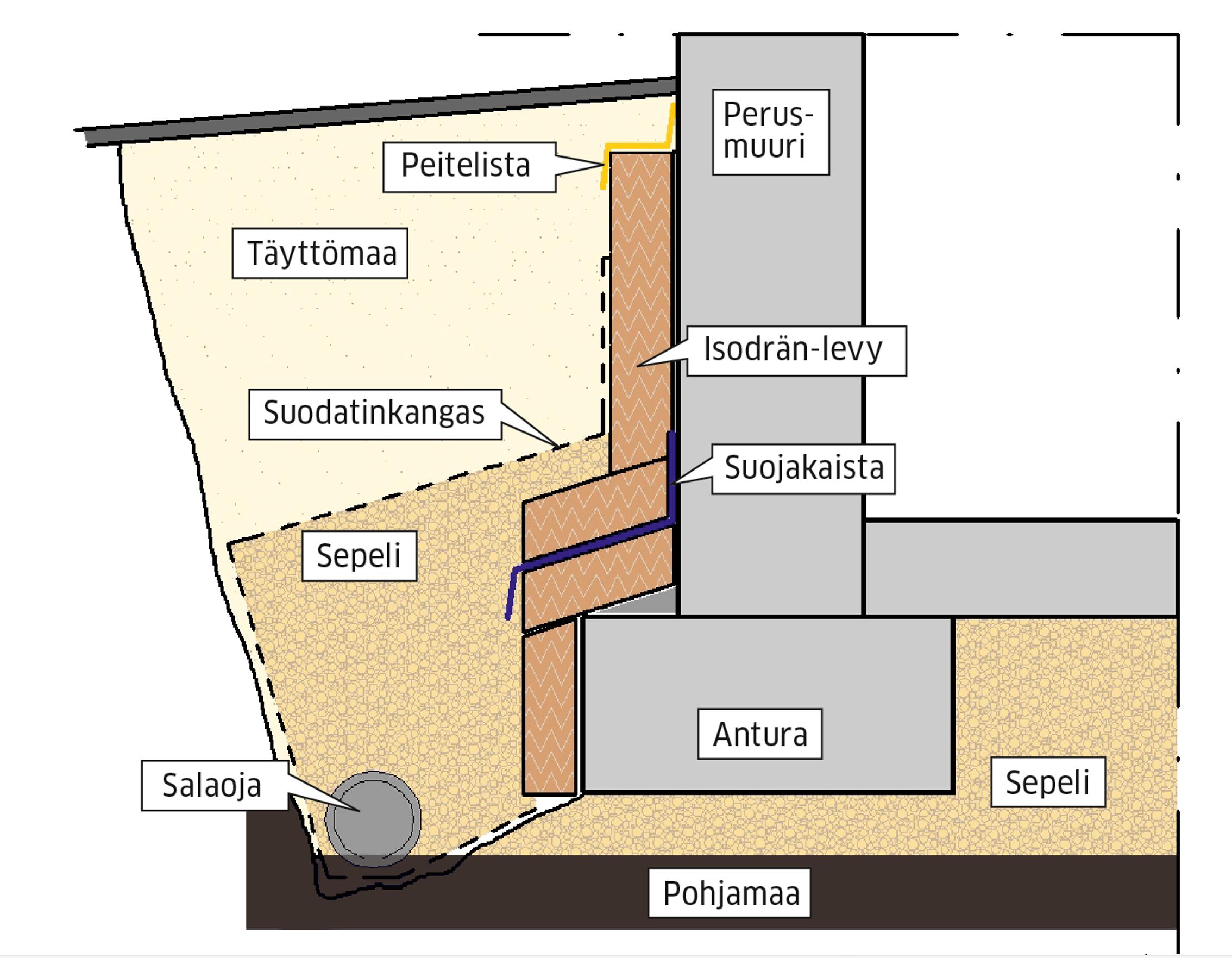 - Talon perusmuurin remontti ja maaperän kuivatus on aina tärkeää suunnitella oikein. Samalla on huolehdittava pystysuuntaisesta salaojituksesta.