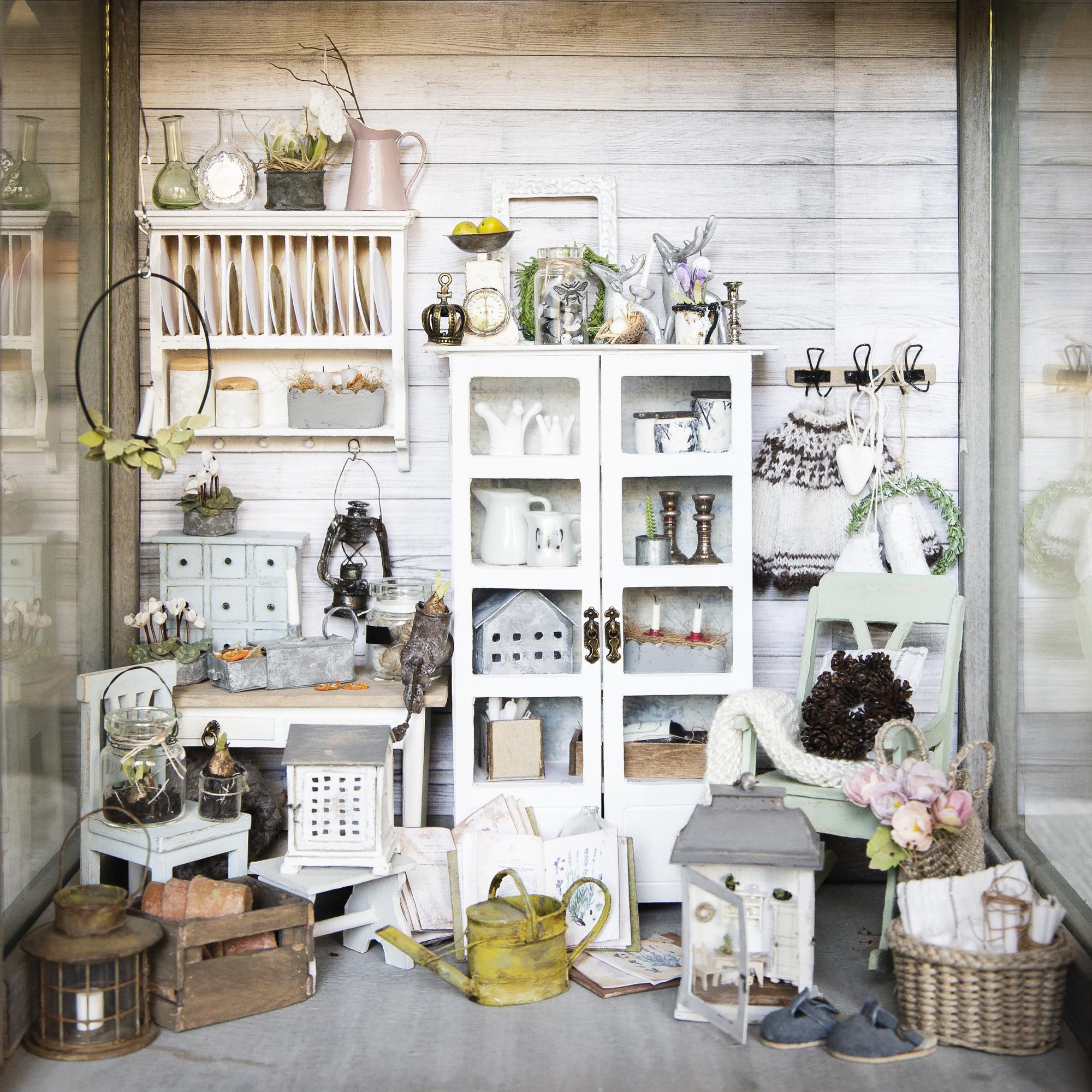 Sallan kotona ei ole paljon oikeita vanhoja kalusteita, mutta minikoossa kaikki on kuin vanhaa: vaa’at, kynttilänjalat, kellot ja hyllyt, jopa ovenkahvat.Mummoni piti tallessa nukkekotiani. Kun hän seitsemän vuotta sitten kuoli, hain talon itselleni. Laitoin sinne uudet tapetit, ja siitä harrastus alkoi.