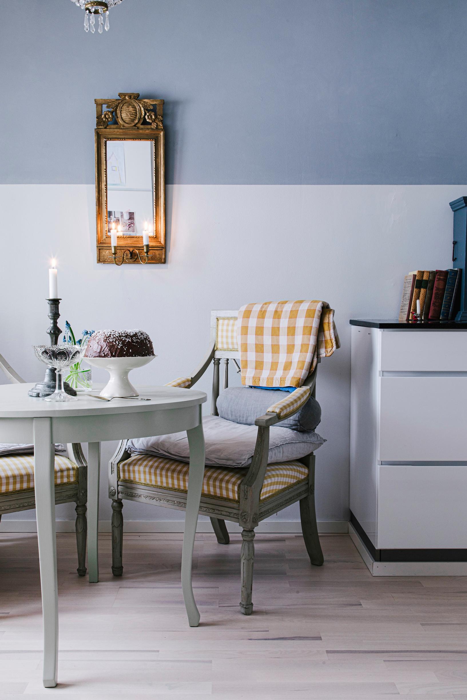 Kustavilainen tyyli puhuttelee Sannaa. Vaikka koti on 1980-luvun rivitalossa, sisällä tunnelma on kuin loisteliaassa kartanossa.