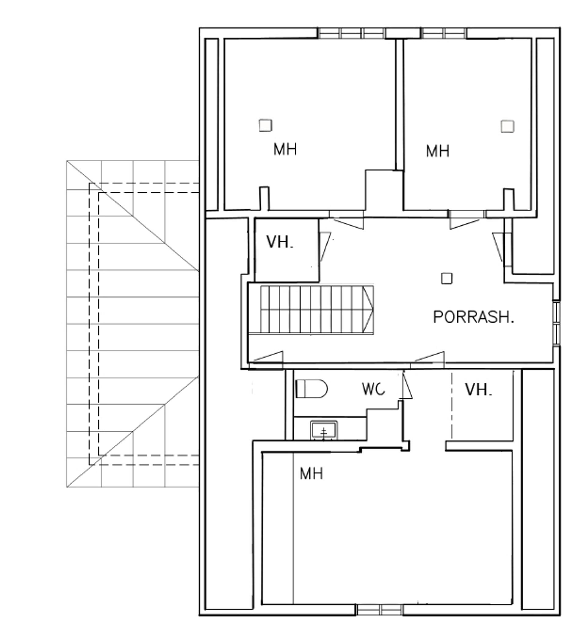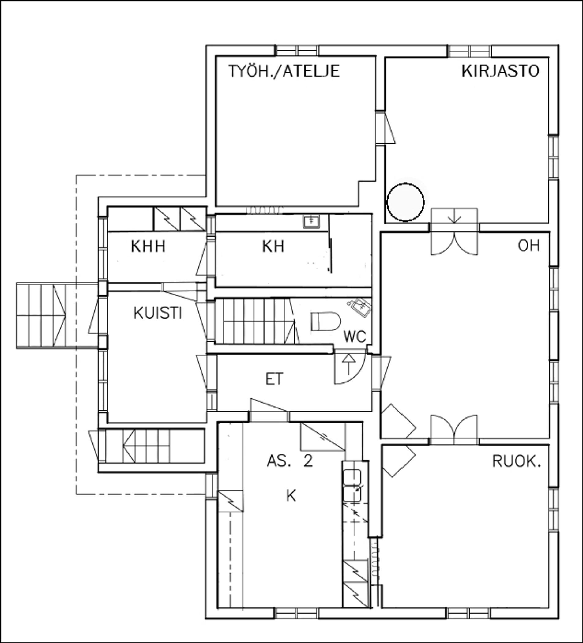 – Talon porraskäytävä oli siihen aikaan kylmää tilaa, joten rakensimme oman portaikon yläkertaan.