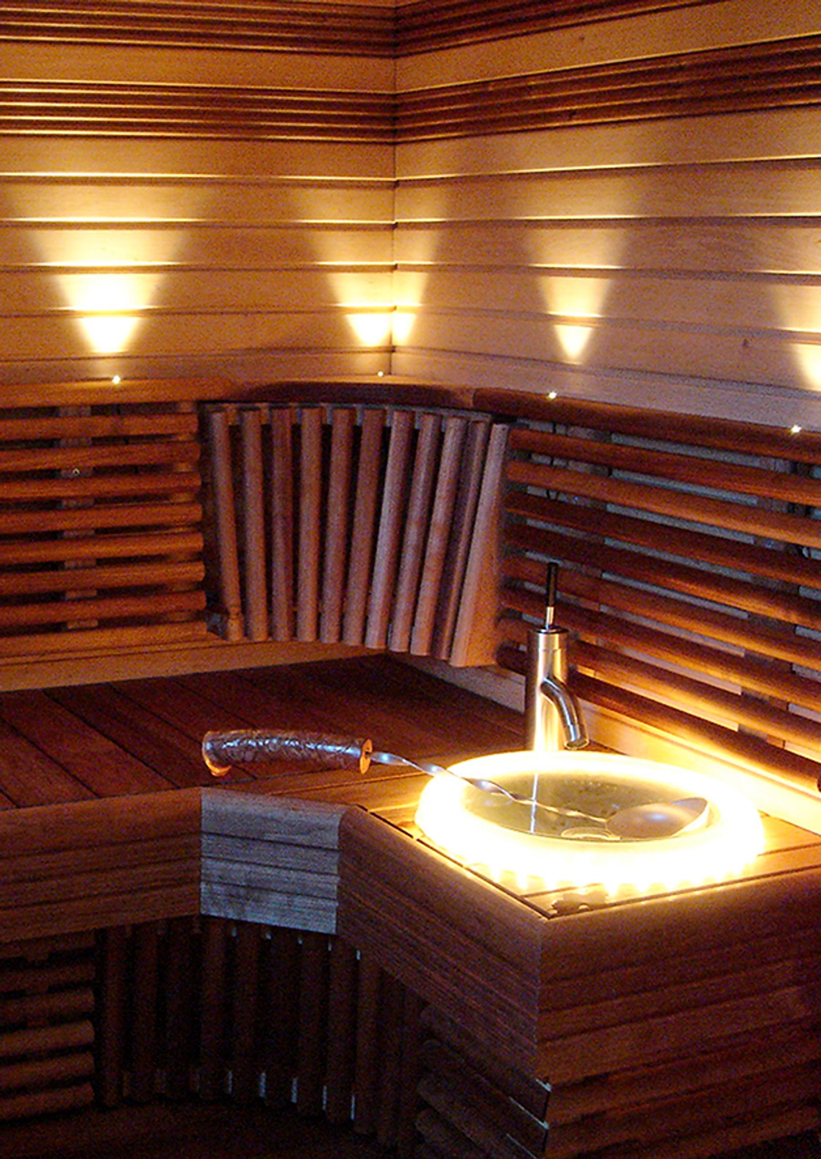 - Rauhoittava saunaelämys saattaa jäädä puolitiehen, jos saunan valaistus ja valoilla leikittely ampuu yli. Kannattaa miettiä kahdesti, tarvitaanko saunassa värillistä valoshow’ta. Myös valon suuntausta on hyvä pohdiskella.