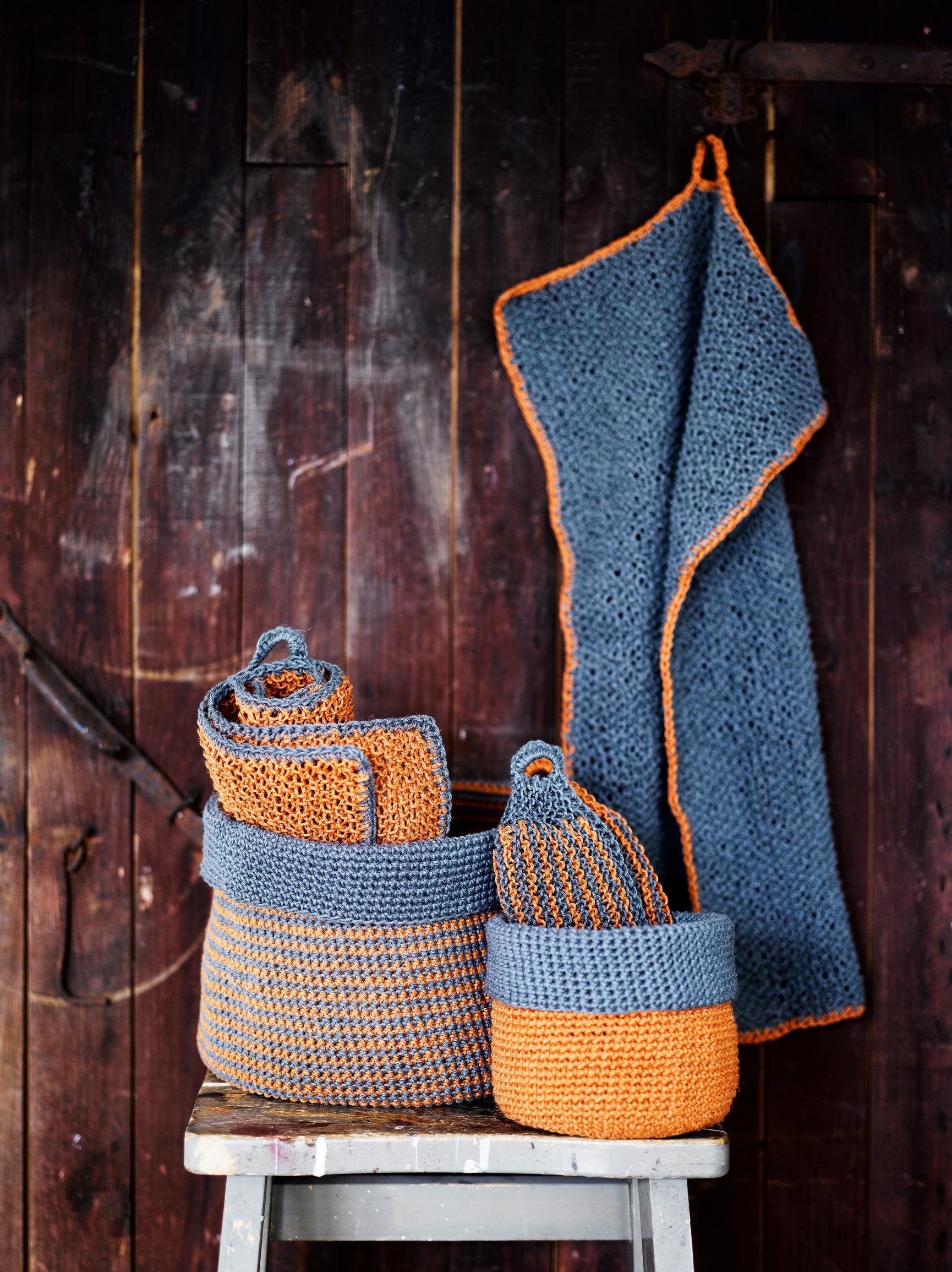Yhdestä vyyhdistä = 500 g: 2 laudeliinaa ja 2 pesukinnasta tai 2 koria.