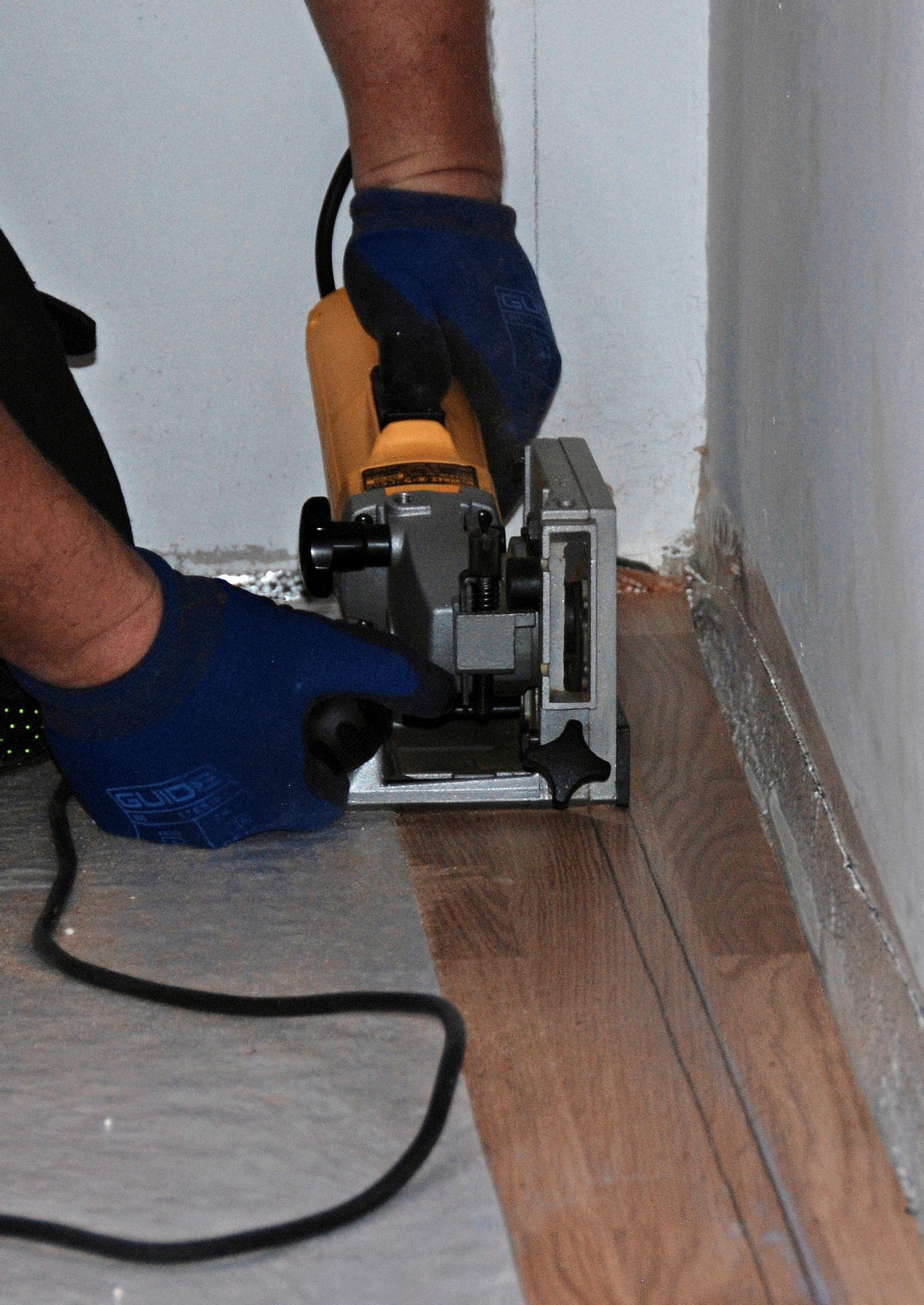 Jos huoneessa on uiva lattia, se pitää leikata seinän alajuoksun alta, jotta lattia jää edelleen uivaksi. Valitse sellainen työkalu, jolla saat leikattua parketin tai laminaatin niin pois, ettet vahingoita rakenteita. Varo, ettei leikkaus revi säleitä näkyviin jäävään lattiaan.