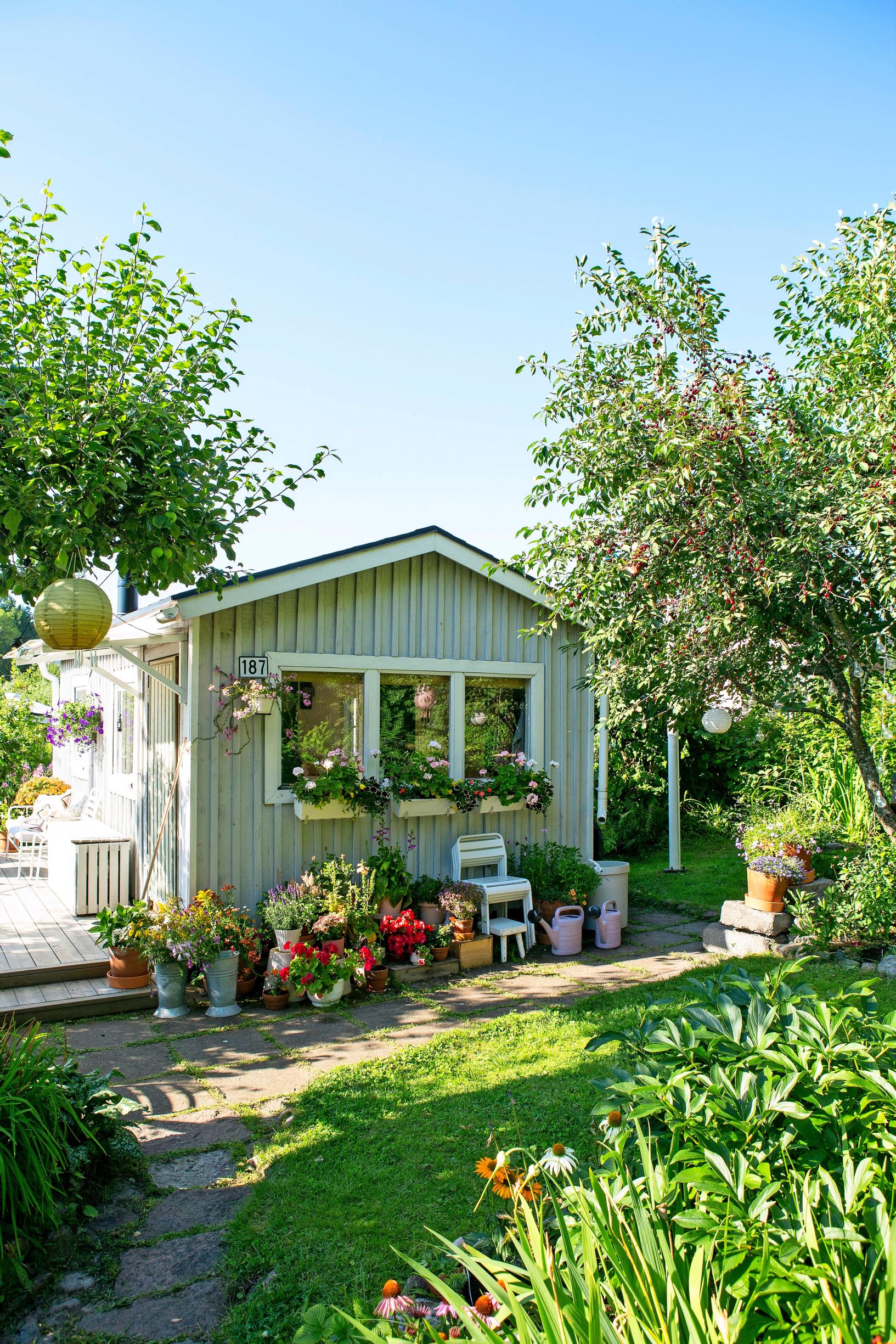 ”Kun portti on auki, pihalle saa piipahtaa” – söpö siirtolapuutarhamökki toimii festarien etkopaikkana ja arjen lepokeitaana