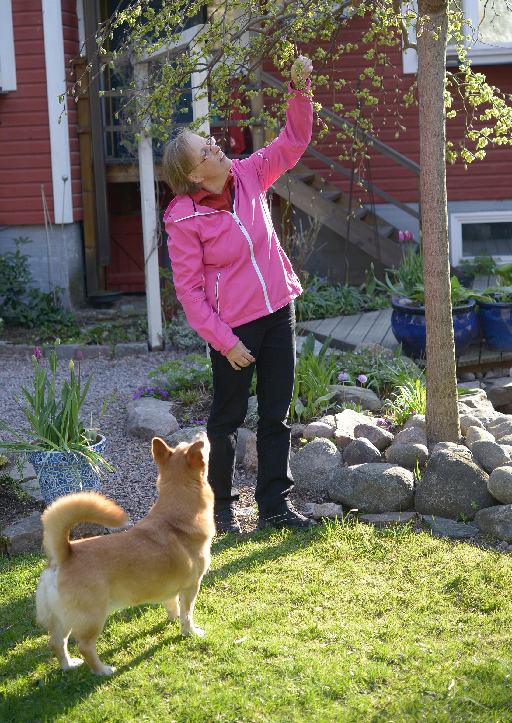 – Täällä kaikki kasvaa liikaa. Tuoksuorvokki on upea, mutta se leviää lähestulkoon riesaksi asti. Isoja kasveja pitää kurittaa koko ajan.