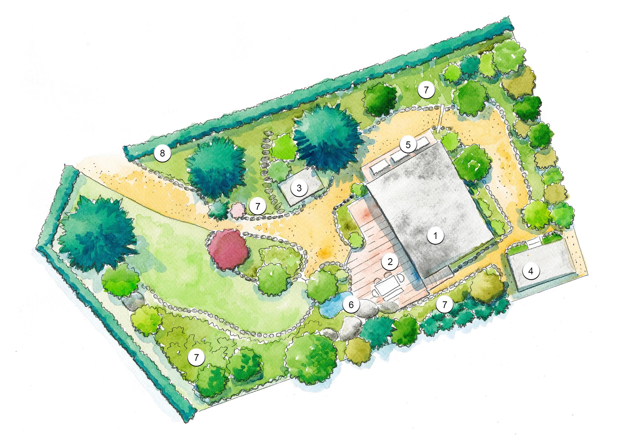 Siskon pihan kasviryhmistä kohoaa monia siroja puuvartisia kasveja, kuten esimerkiksi katsuraa, kellokuusamaa, riippajalavaa sekä magnolioita, kirsikkapuita ja orapihlajia. Niiden juurella on sopivia istutuspaikkoja katveesta nauttiville perennalajeille.