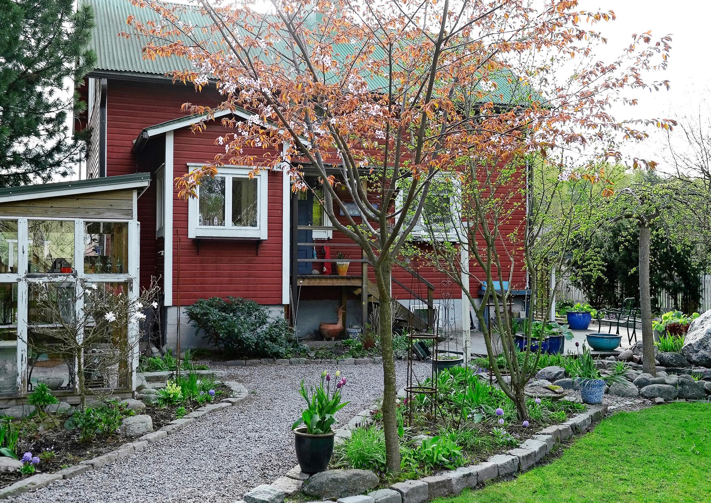 Sisko Chasen puutarha pursuaa ihastuttavia ja erikoisiakin lajeja. Rintamamiestalon pihaa kaunistavat myös kesähuone ja suuren, varjostavan puun alle perustettu varjotarha.