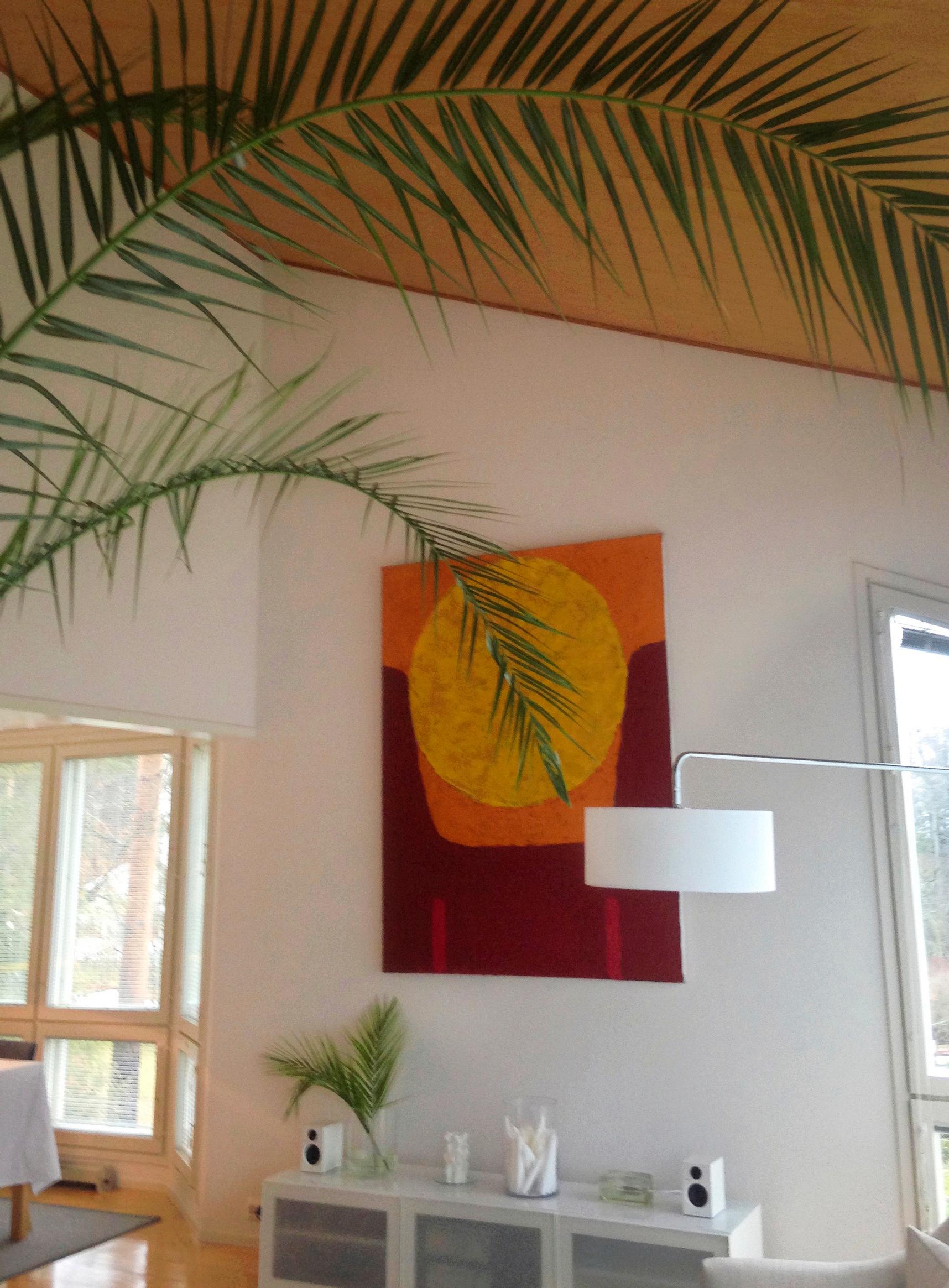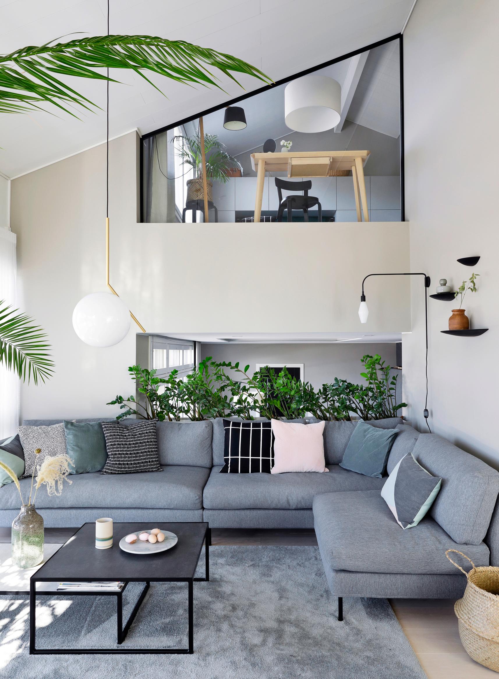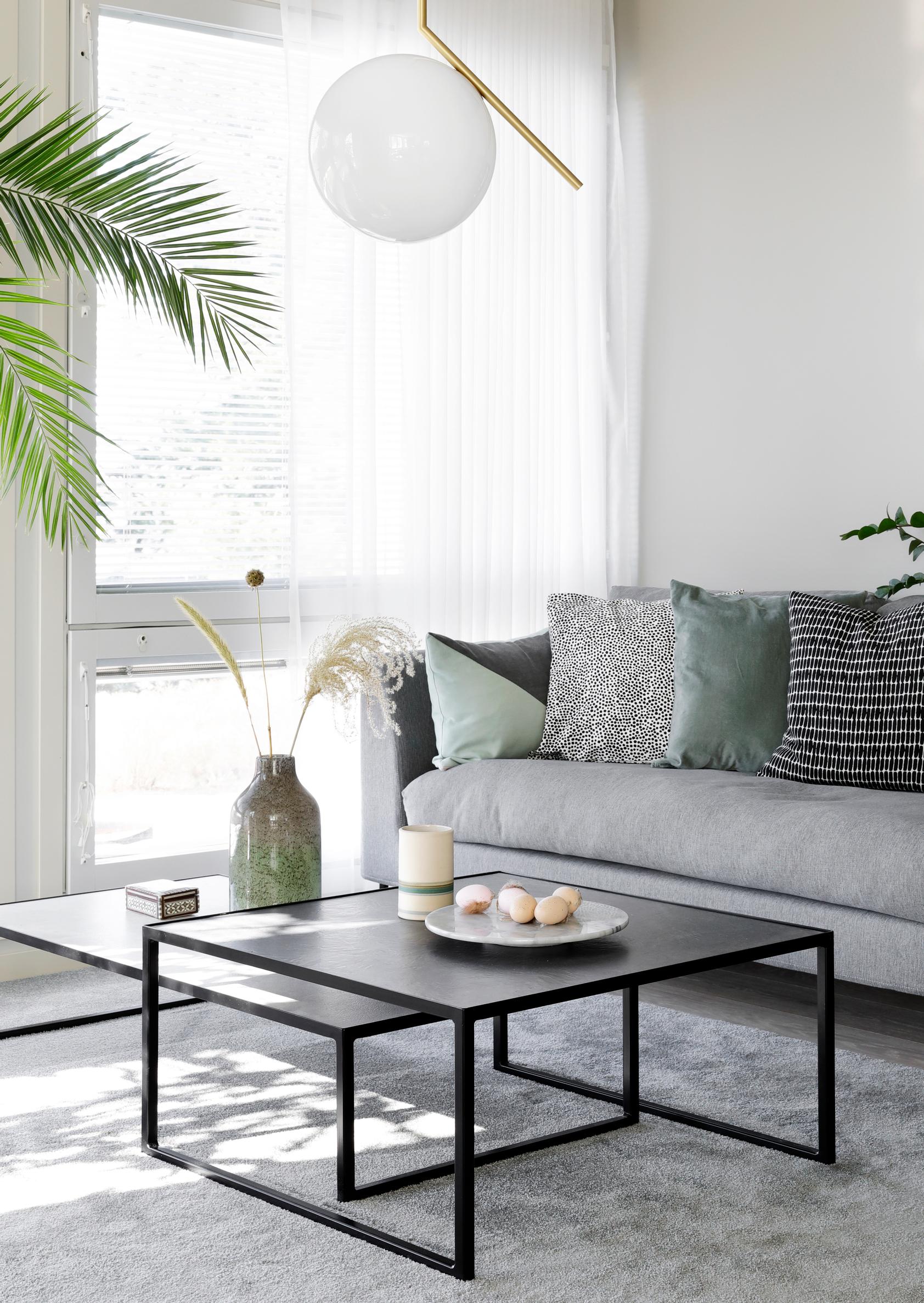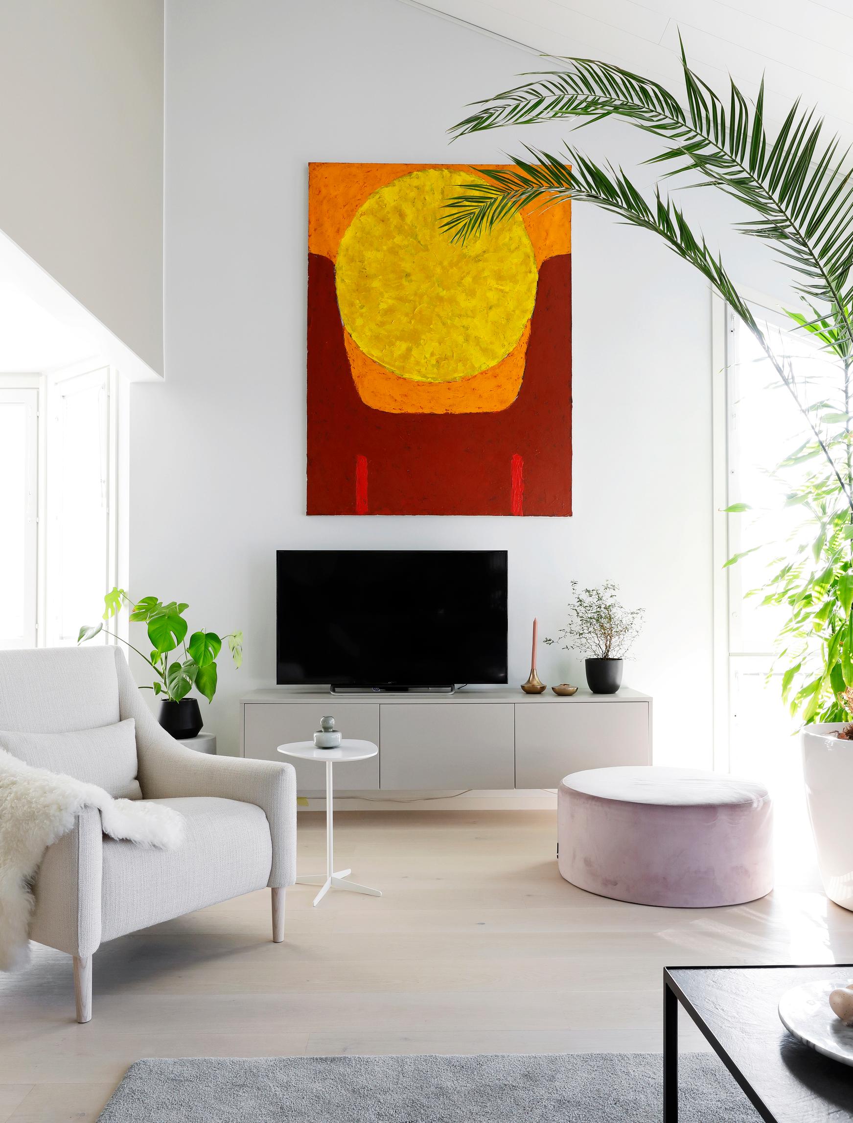 Kodin kaikissa tiloissa on runsaasti viherkasveja, sillä niillä saa helposti uutta ilmettä kotiin. Kasvit ovat sisustuselementtejä, mutta samalla hyödyllisiä puhdistaessaan huoneilmaa. Pelkistettyyn sisustukseen ne tuovat myös runsautta ja mielenkiintoa.