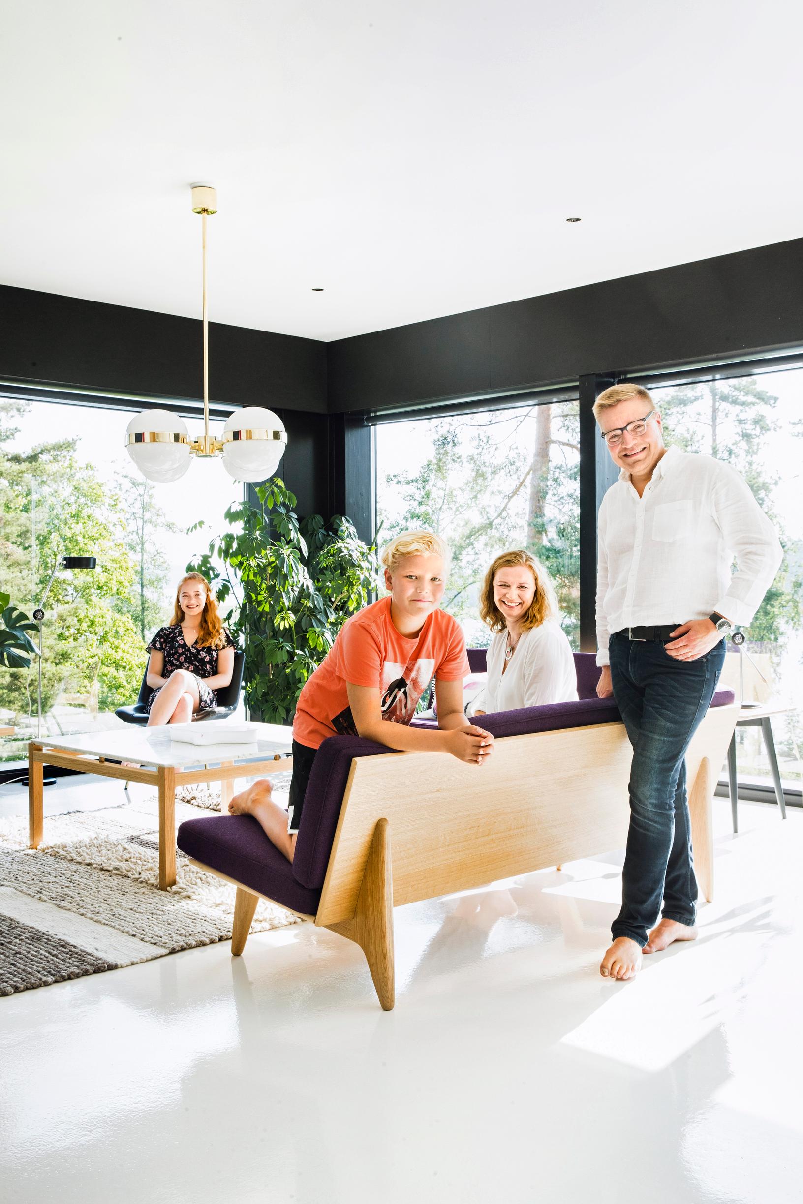 Perhe nauttii erityisen paljon talon avaruudesta ja isoista ikkunoista.
