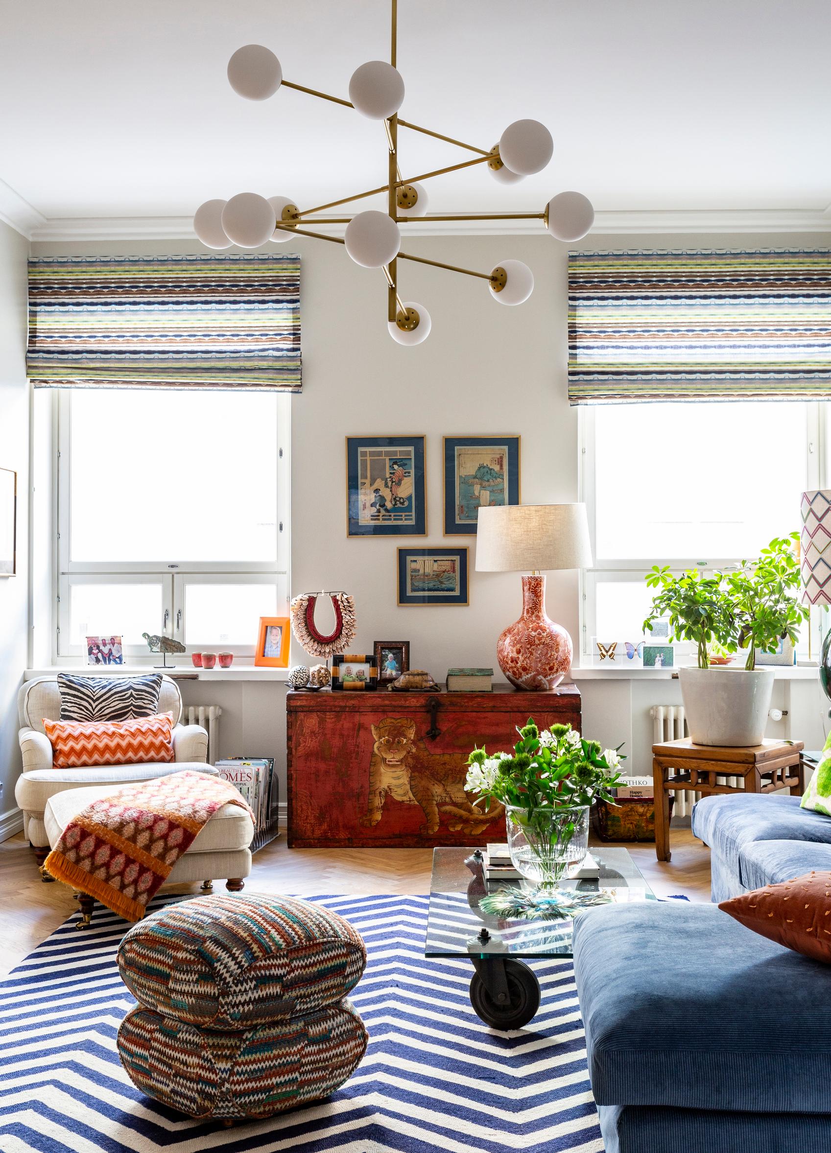 ”Toista samoja värejä tekstiileissä, tauluissa ja esineissä. Pelkät värikkäät tyynyt vaaleassa kodissa näyttävät orvoilta.”