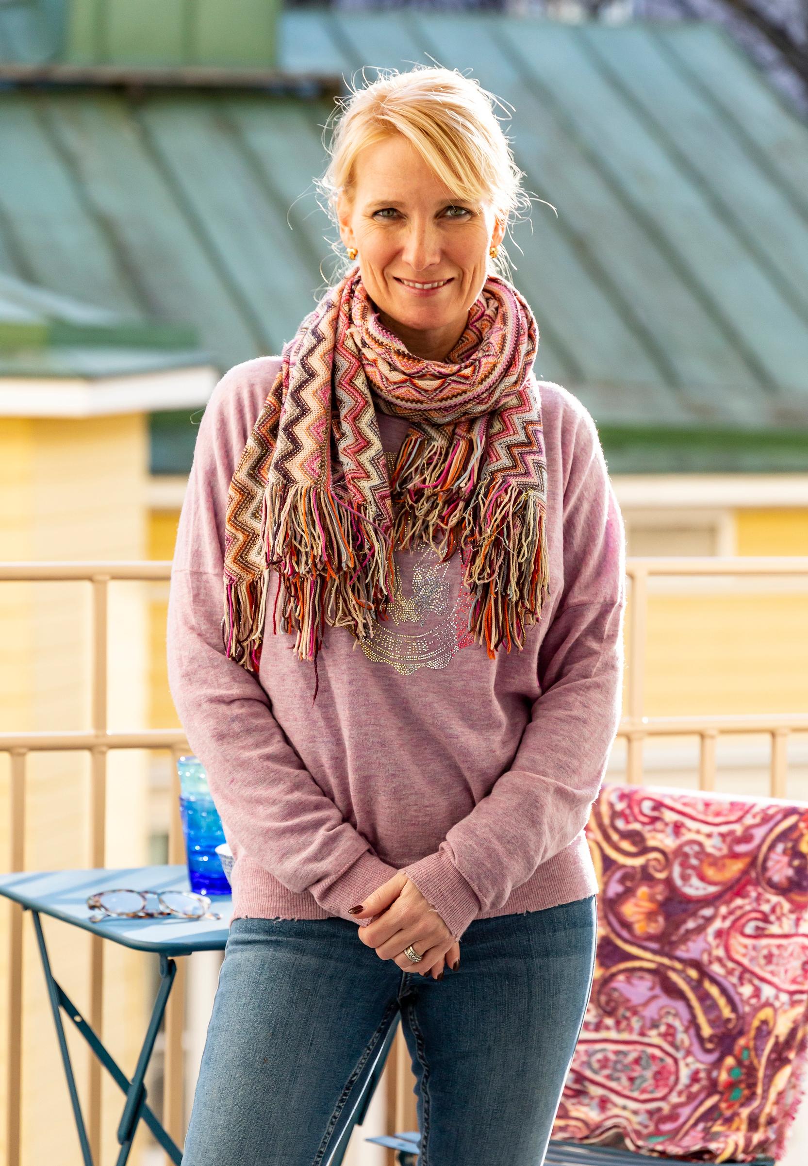 – Saan voimakkaista väreistä paljon energiaa niin pukeutumisessa kuin sisustamisessakin. Tällä hetkellä vihreä on suosiossa, ja kestosuosikkini on sininen. Tykkään yhdistellä kaikkia värejä ja pidän myös lämpimistä murretuista väreistä.