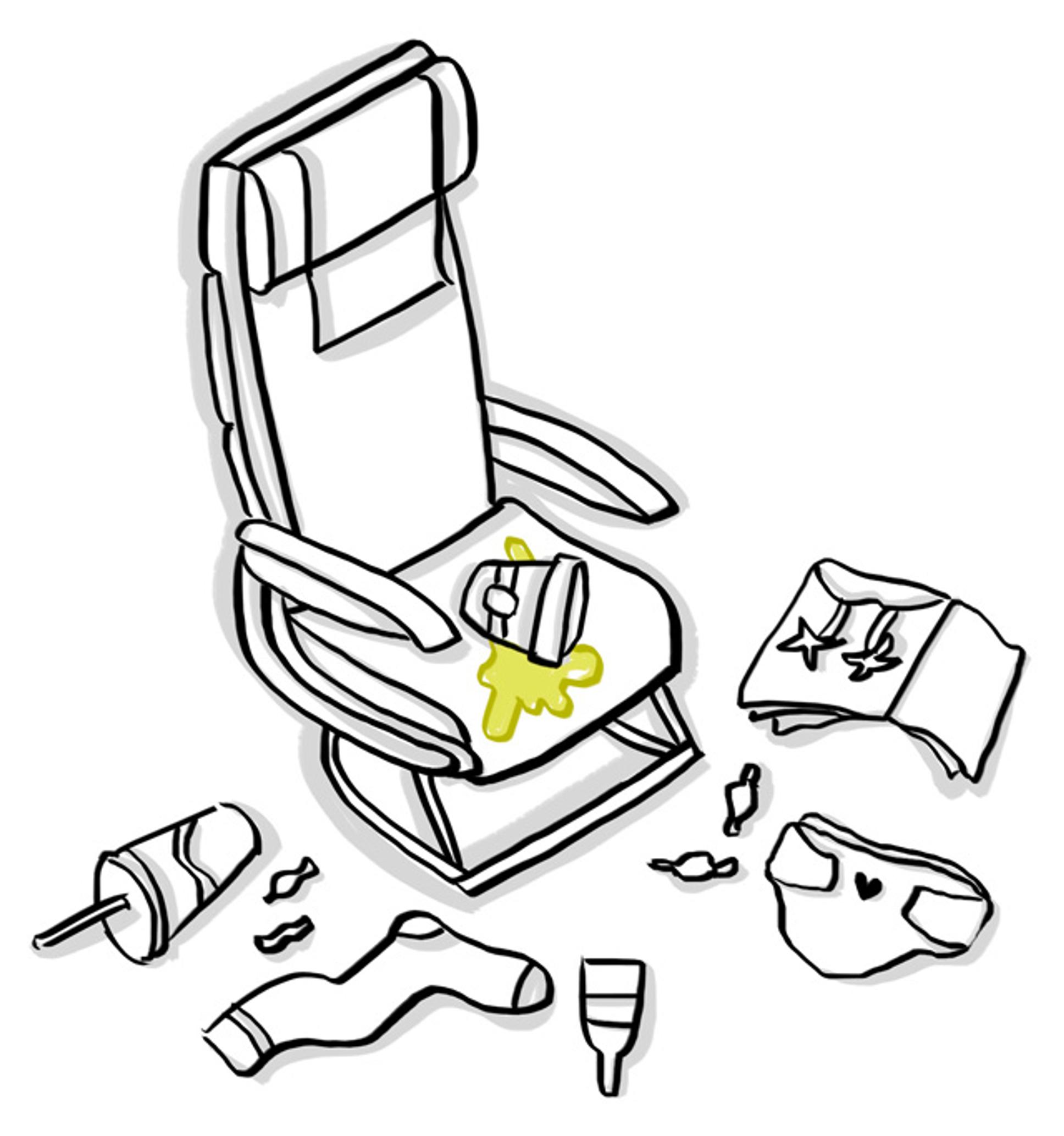 Pitkiltä lennoilta matkustajat jättävät koneeseen kaiken, mitä he eivät enää tarvitse: karkkipapereita, eväiden jämiä, puoliksi juotuja limutölkkejä, niskatukia ja kertakäyttösukkia.