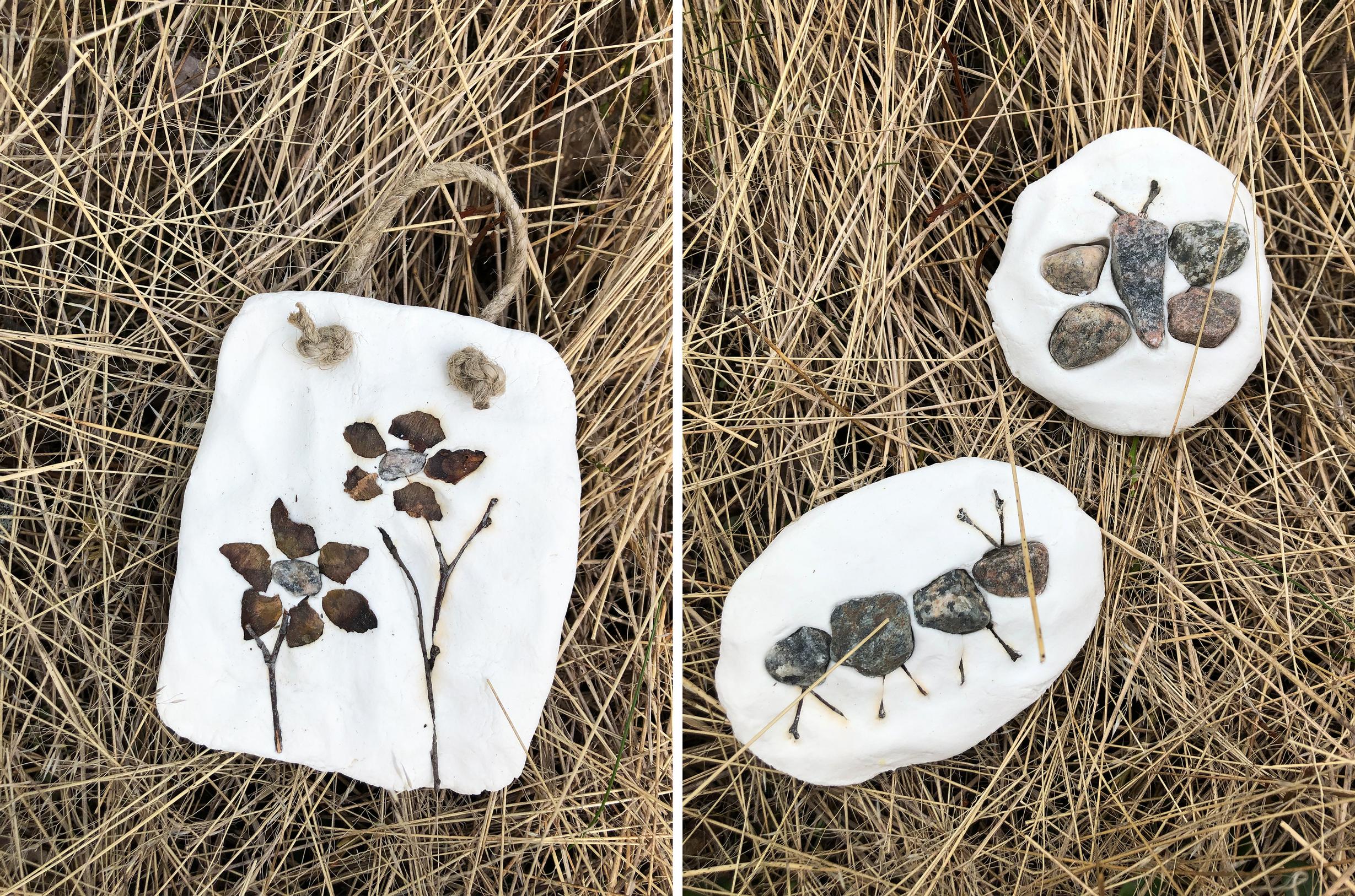 - Risut, suomut ja kivet kannattaa painaa syvälle taikinaan, jotta ne kiinnittyvät kunnolla ja pysyvät paikoillaan töiden kuivuttuakin.