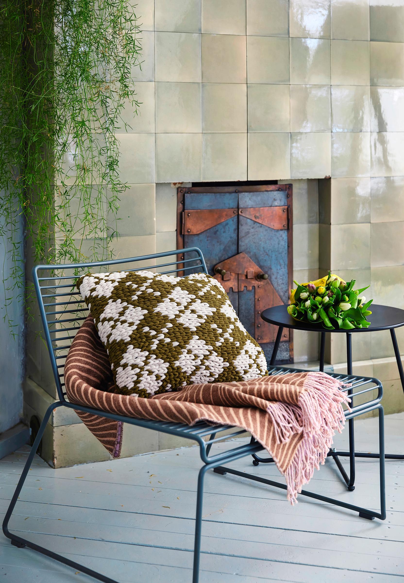 Tyynyn kaksivärinen ruutupäällinen syntyy vain yhtä lankaa käyttämällä – katso ohje ja kokeile hauskaa sormineulontaa!
