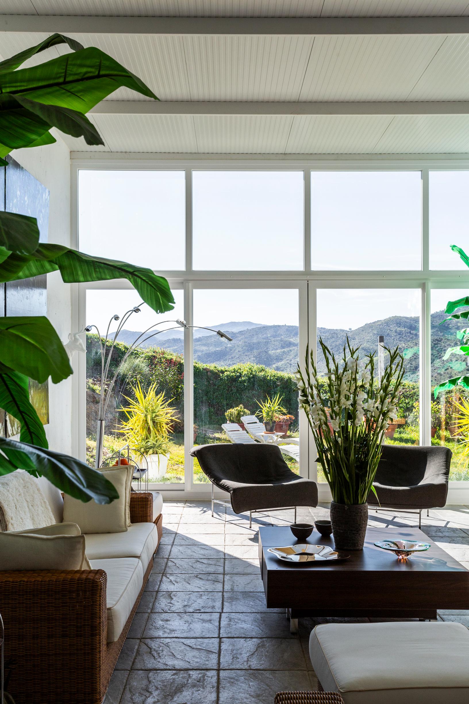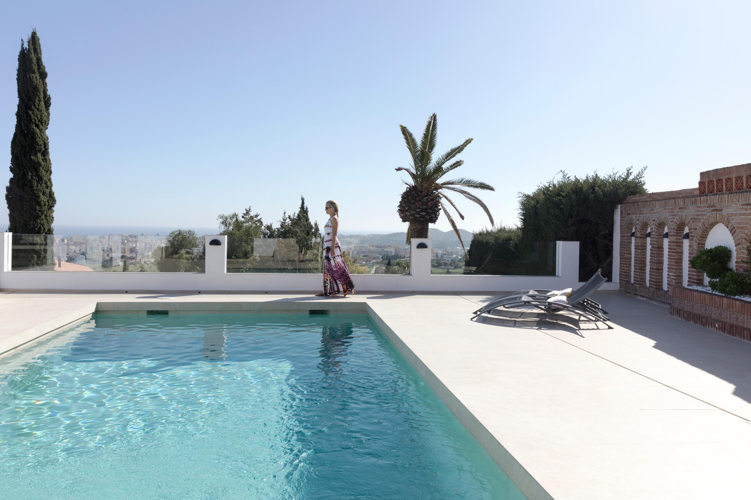 Sisustuksessa Lehdot luopuivat värikylläisestä ilmeestä. He valitsivat tilalle hillityn sävymaailman ja selkeät linjat. Taloon kuuluu myös uima-allas ja näkymä Välimerelle. Etelän lämmöstä nauttimisen maksimoimiseksi he uudistivat myös allasalueen ja terassit.