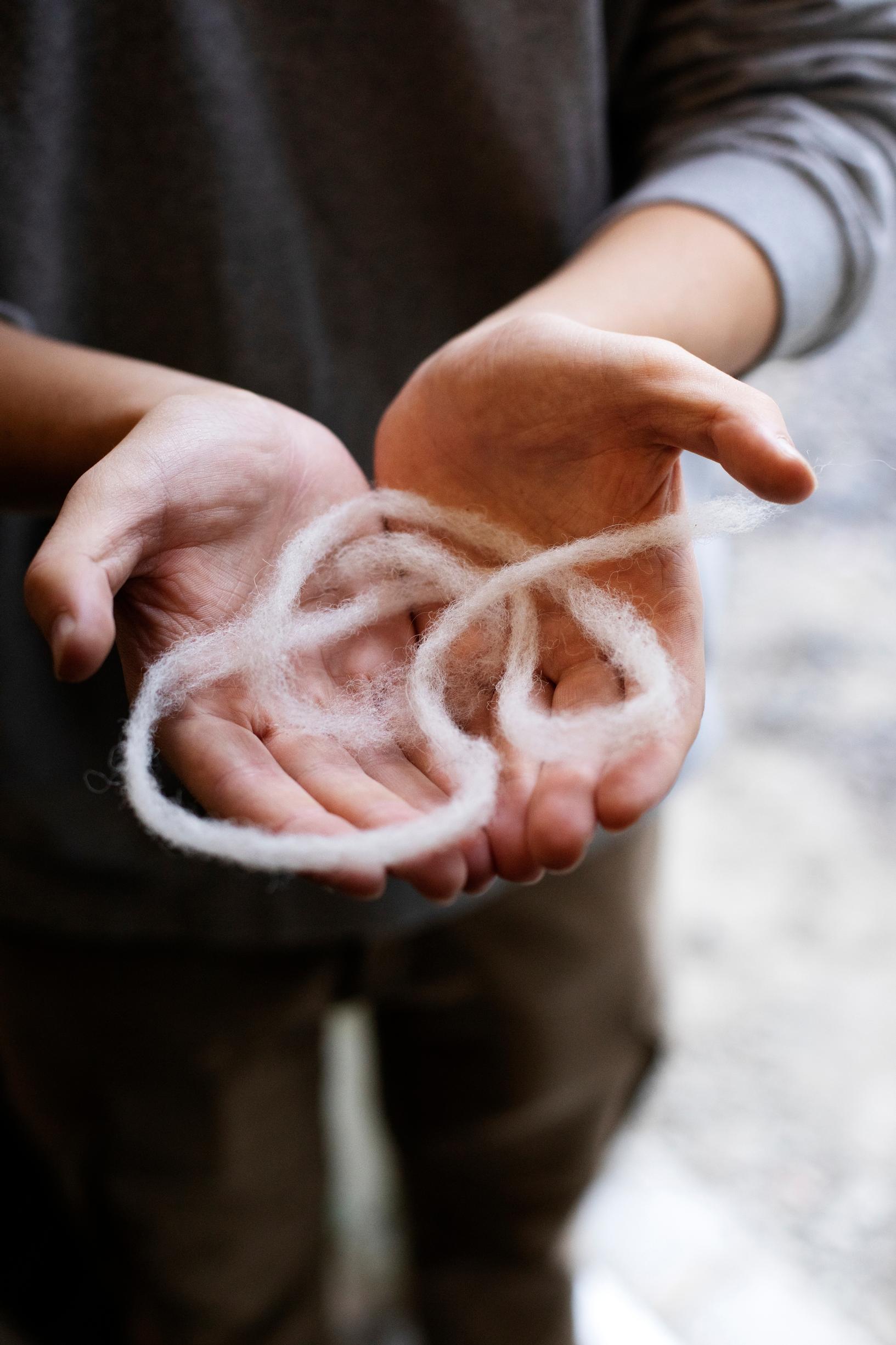 – Kuituna suomenlampaan villa on hieno, monikäyttöinen ja ekologinen. Jälkikäsittelystä riippuen siitä voidaan valmistaa neuleita, mutta se soveltuu myös ihoa lähellä oleviin sisustustuotteisiin kuten torkkupeittoihin ja tyynyihin. Lisäksi sitä voidaan huovuttaa helposti. Siitä voidaan tehdä niin ohutta kuin paksua kudetta. Harvalla villalaadulla on näin laajat käyttömahdollisuudet. Tuntui käsittämättömältä, että hyvä materiaali meni jätteeksi, sanoo Hienonen.