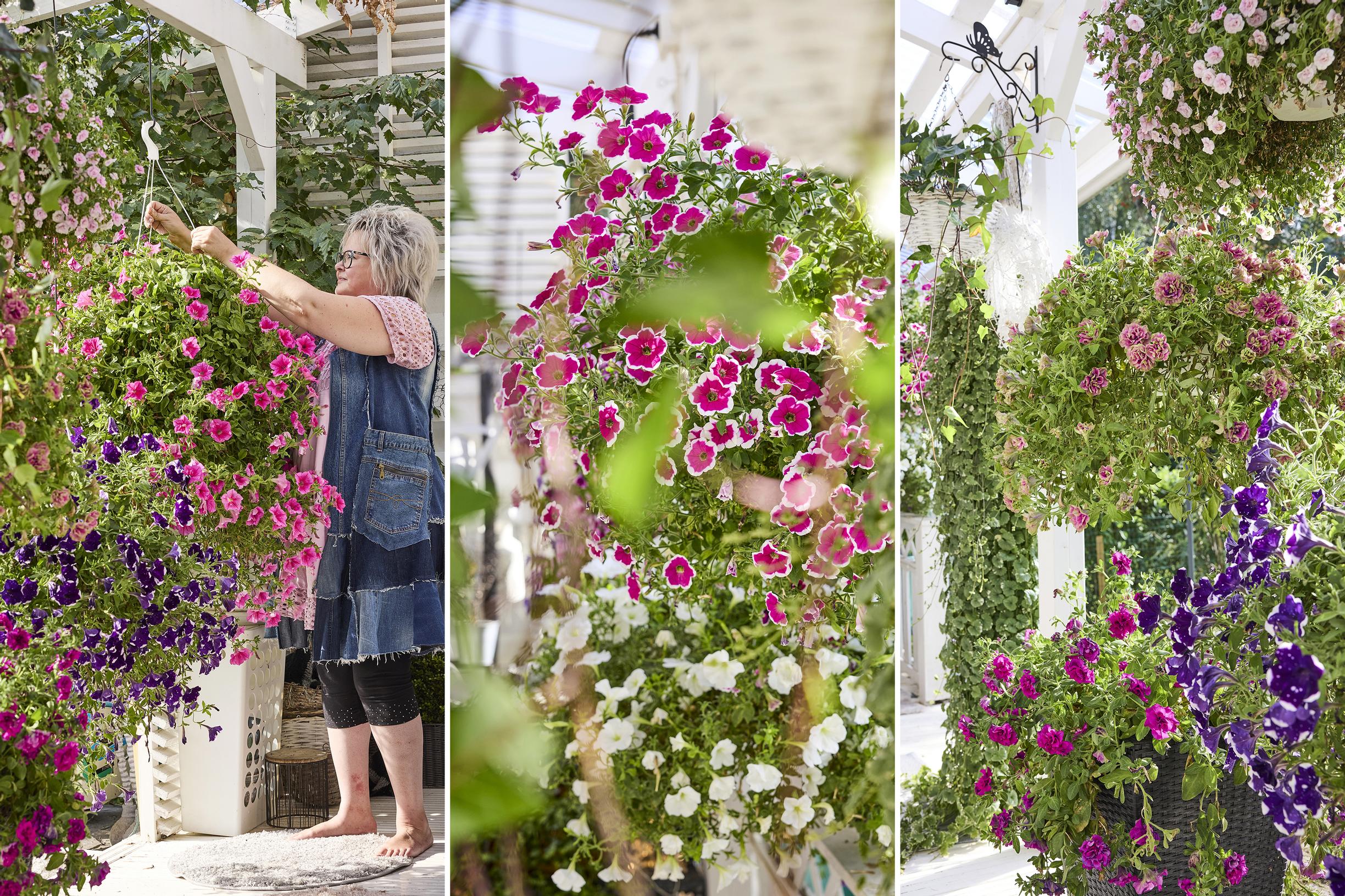 Hämeenlinnalainen Maarit rakastaa kukkia, mutta vihaa kitkemistä. Hänen puutarhastaan ei löydy yhtäkään kukkapenkkiä, mutta silti piha kukkii yltäkylläisesti keväästä syksyyn – amppelikasvien voimin. Katso Maaritin vinkit kesäkukkien hoitoon ja hänen suosikkiamppelikasvinsa!