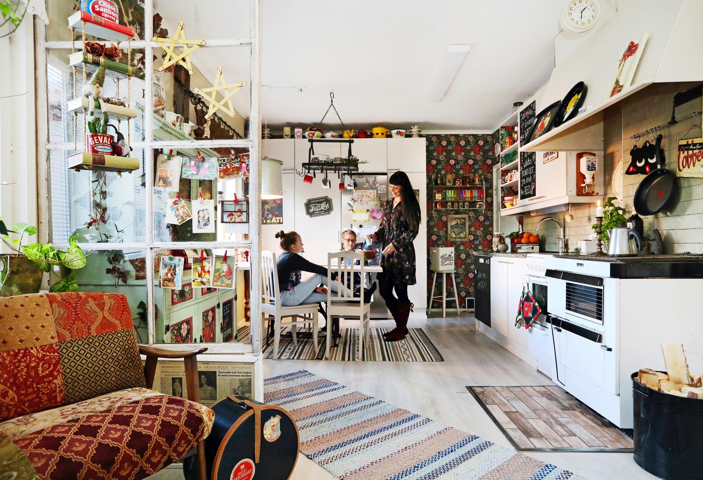 Kuplivan värikäs rintamamiestalo on Susannan leikkikenttä: ”En ajattele sisustavani, mieluummin rakennan pesää”