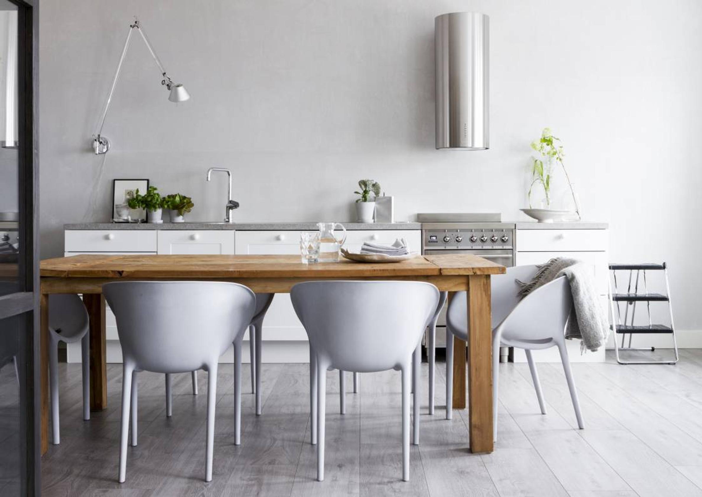 Kun tavoitteena on vähäeleinen keittiö, valitse liesituuletin, joka sulautuu taustaansa. Jos keittiöön tulee saareke ja siihen liesi, valittavana on valaisinmainen malli, saareketuuletin tai huomaamaton kattoon tai tasoon integroitu. Tee saarekkeesta mahdollisimman suuri, jotta saat siihen runsaasti kaappeja.