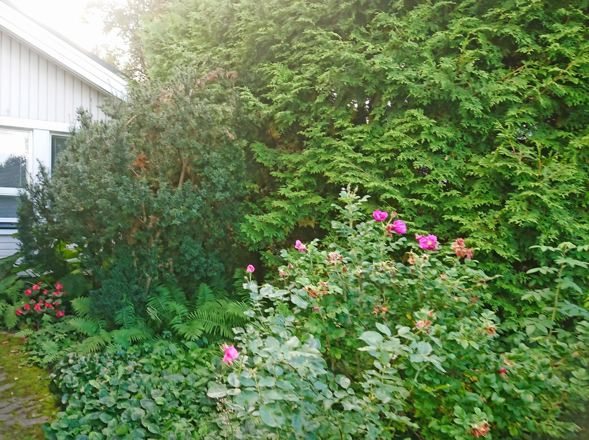 Havukasvit talon seinän vieressä ovat hankalia, koska ne säilyttävät neulasensa ympäri vuoden eikä ilma pääse koskaan kiertämään vapaasti seinän lähellä. Pienilmasto muuttuu kosteaksi, mikä näkyy esimerkiksi sammalten kasvuna kiveyksillä.