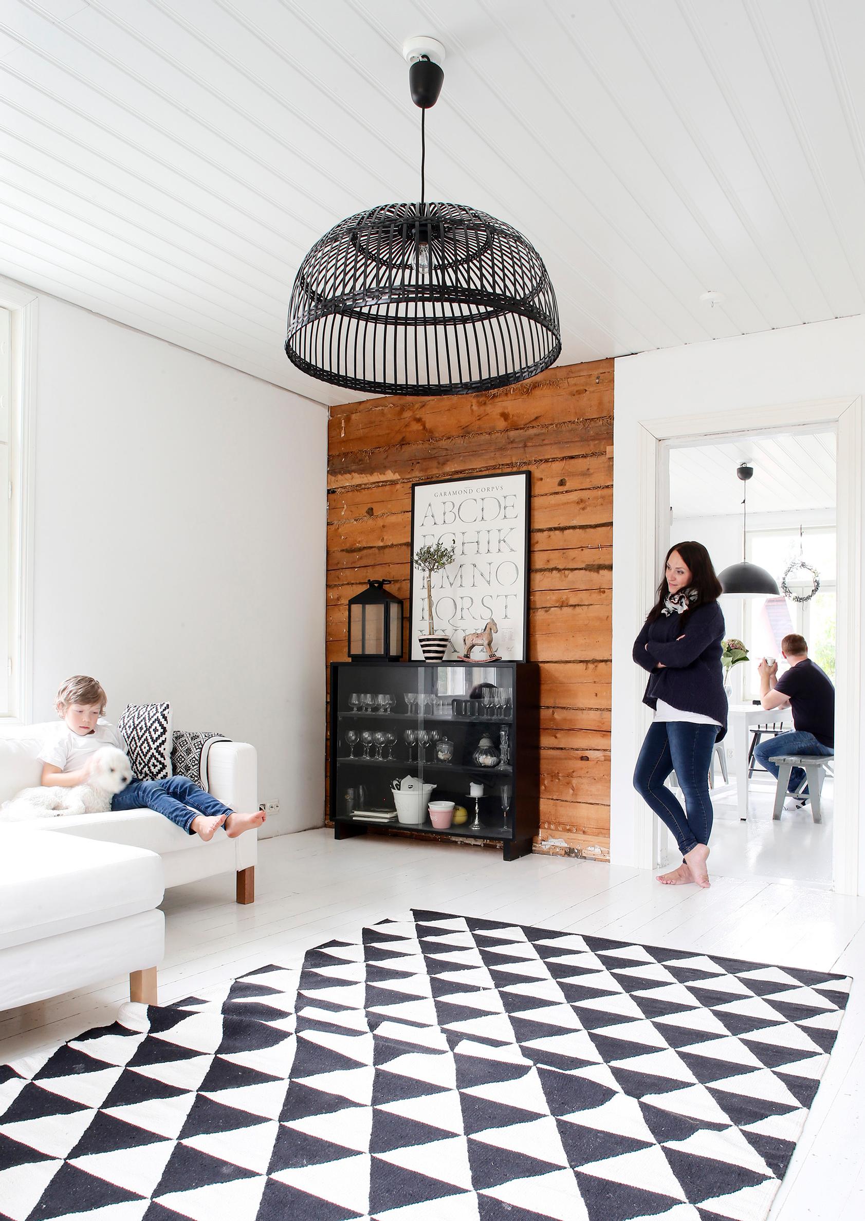 Suurperheen koti on selkeän mustavalkoinen – "Hektisen elämän vastapainoksi värimaailma saa olla rauhoittava"