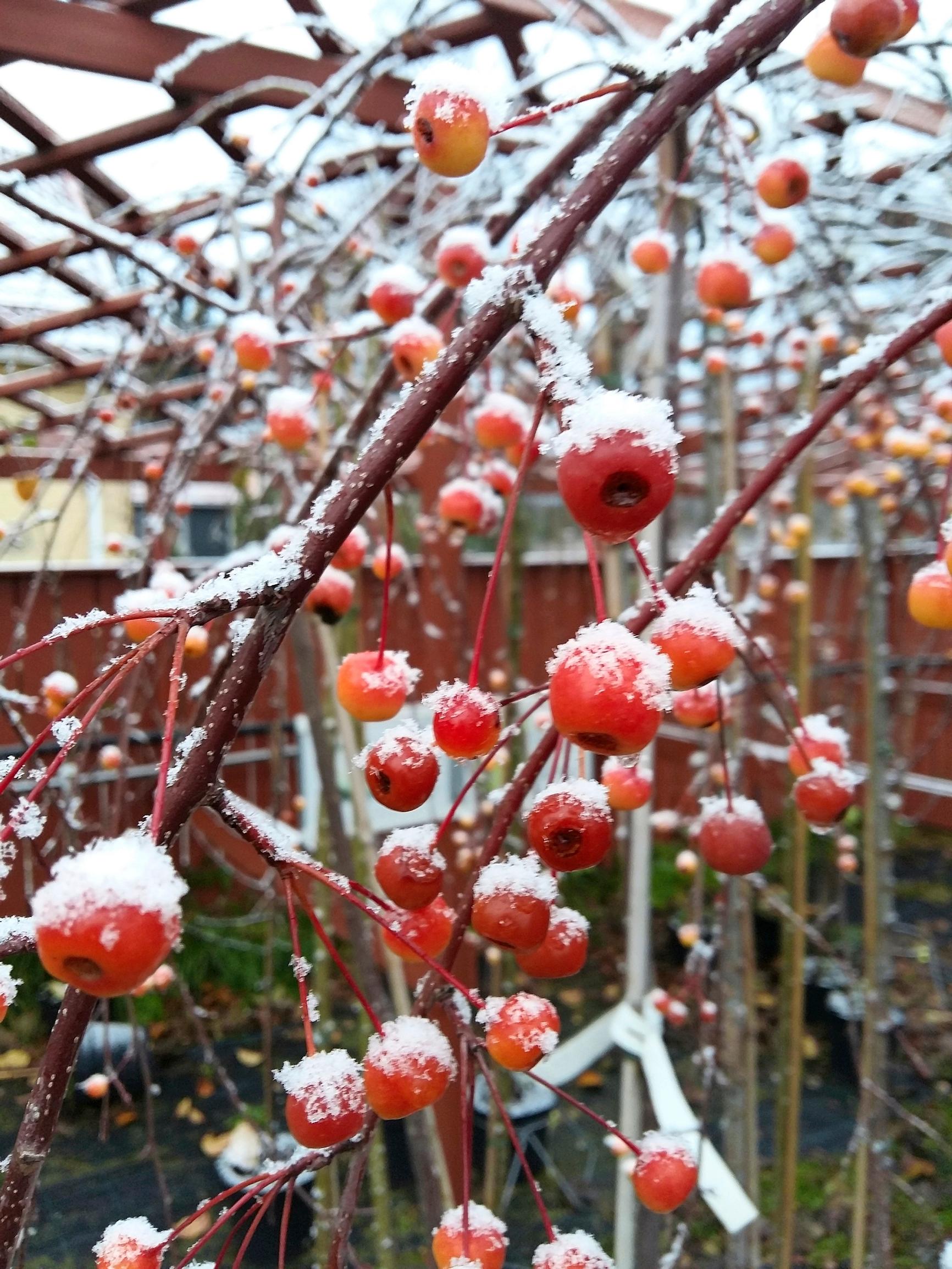 Kauniit marjat ja hedelmät somistavat näitä pensaita ja puita jopa pakkasten puraisuun saakka. Taimistot valitsivat kotipihoille sopivat suosikkinsa. Mitä sanoisit esimerkiksi vaaleanpunamarjaisesta pihlajasta?